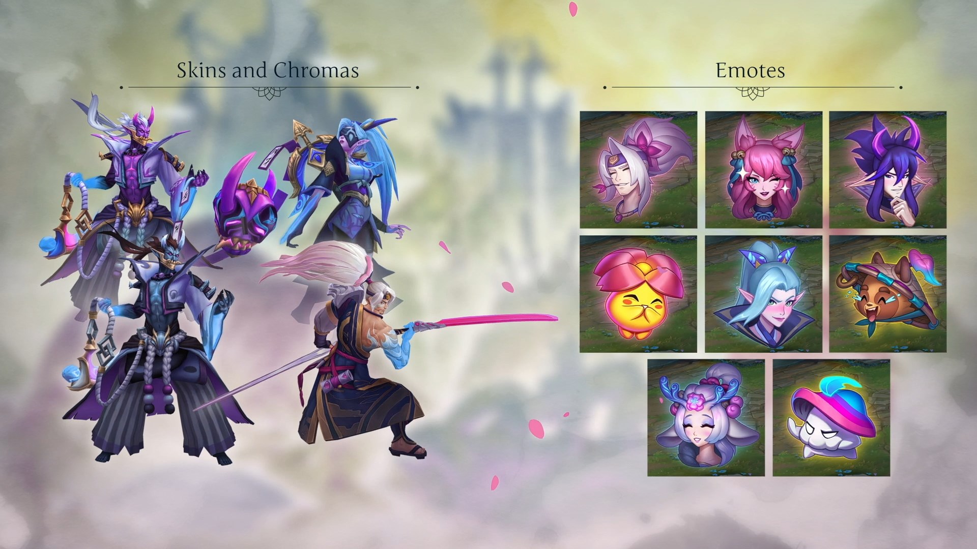 Enfin, vous pourrez débloquer des Chromas pour les nouveaux skins, des émotes, des essences bleues, des sacs et des orbes Spirit Blossom, et enfin des points de prestige.