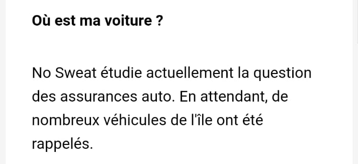 actuellement la question des assurances auto. En attendant, de nombreux véhicules de l’île ont été rappelés. »
