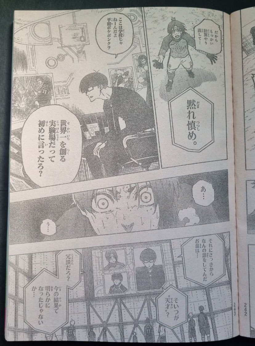 — Tais-toi. C’est ça, Blue Lock. Ici, seuls les rêveurs fous, ceux qui ne s’arrêteront jamais tant qu’ils n’auront pas atteint le sommet du monde, ont leur