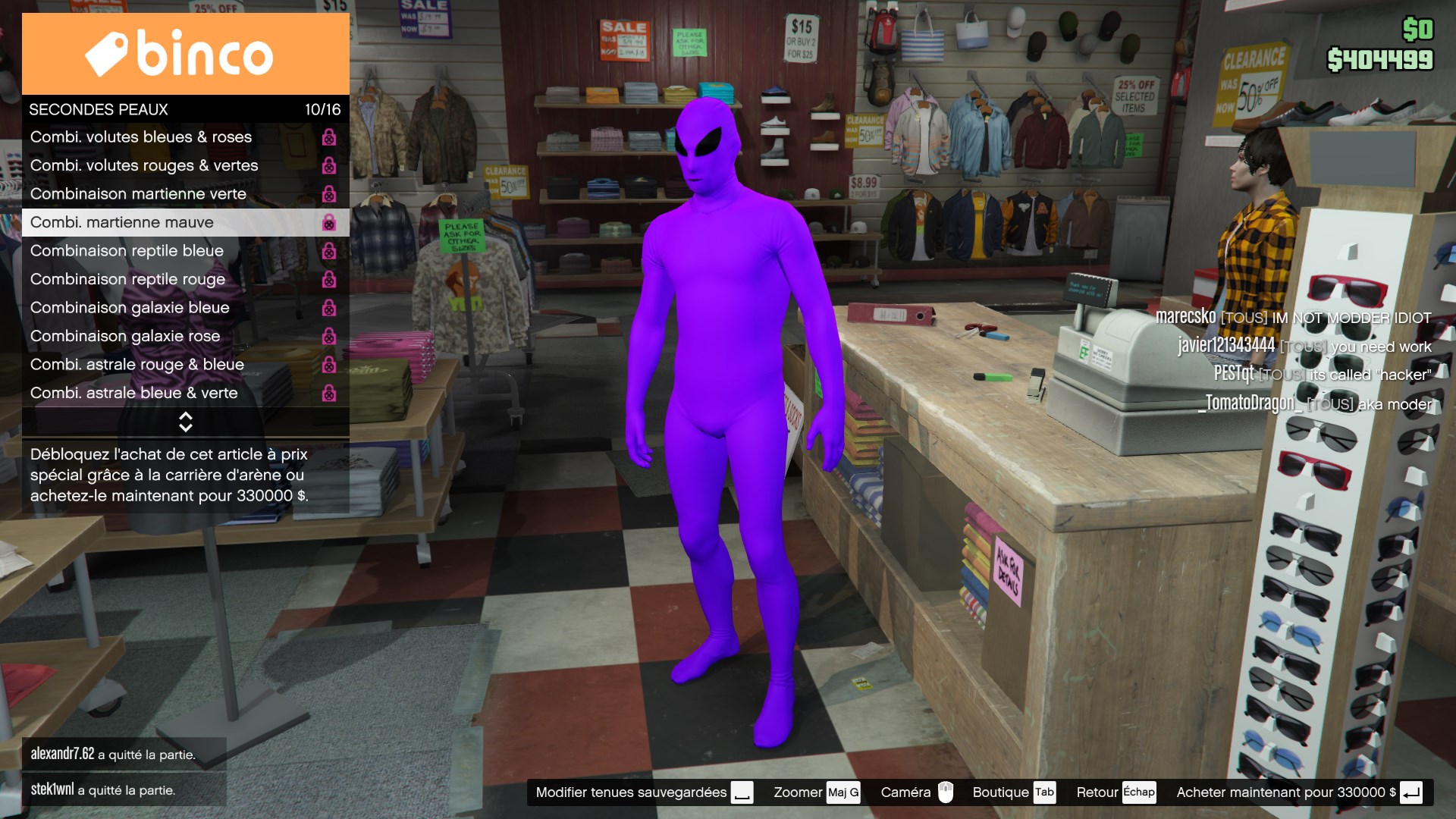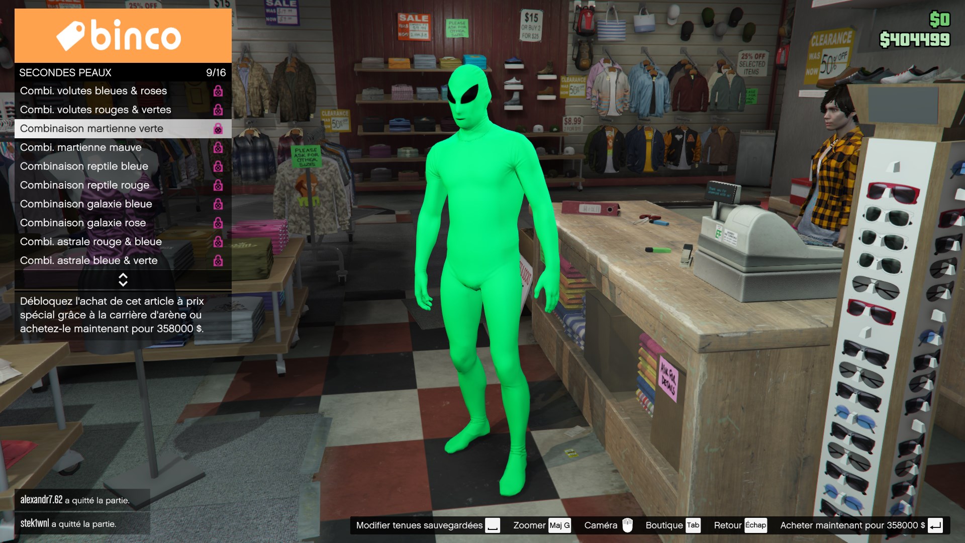 Avant de rejoindre un gang, il faut la bonne tenue et pas mal d’argent. Car pour ressembler à un alien, il faut au minimum 330 000 dollars, à moins d’avoir une carrière dans l’arène.