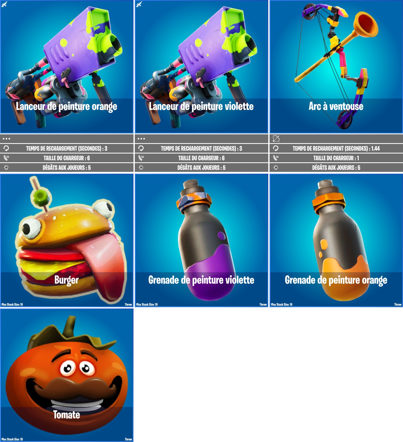 , mais aussi des grenades de peinture, des lanceurs de peinture et même un arc à ventouse !
