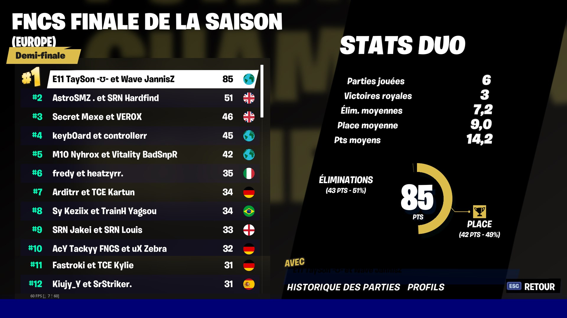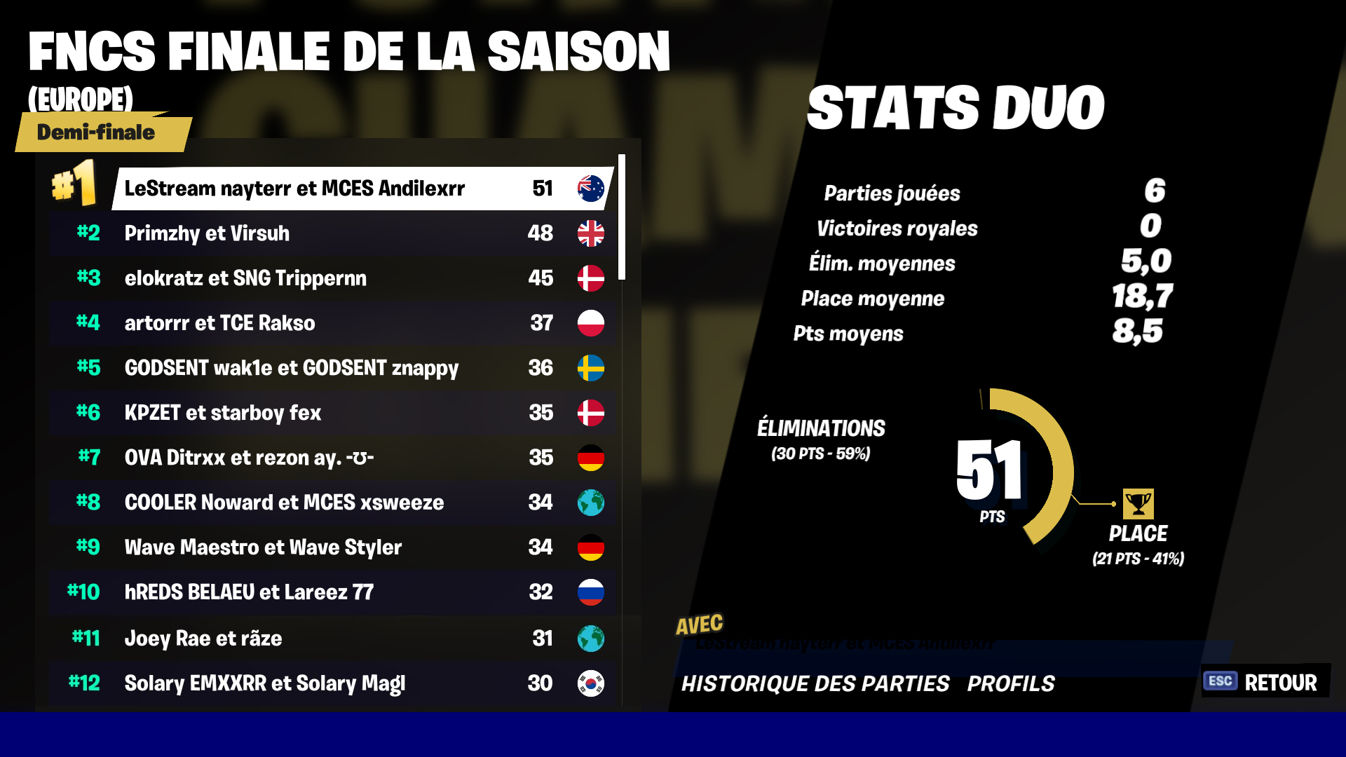 FNCS Heats : Classement et résultats de la finale Fortnite Champion Series en duo