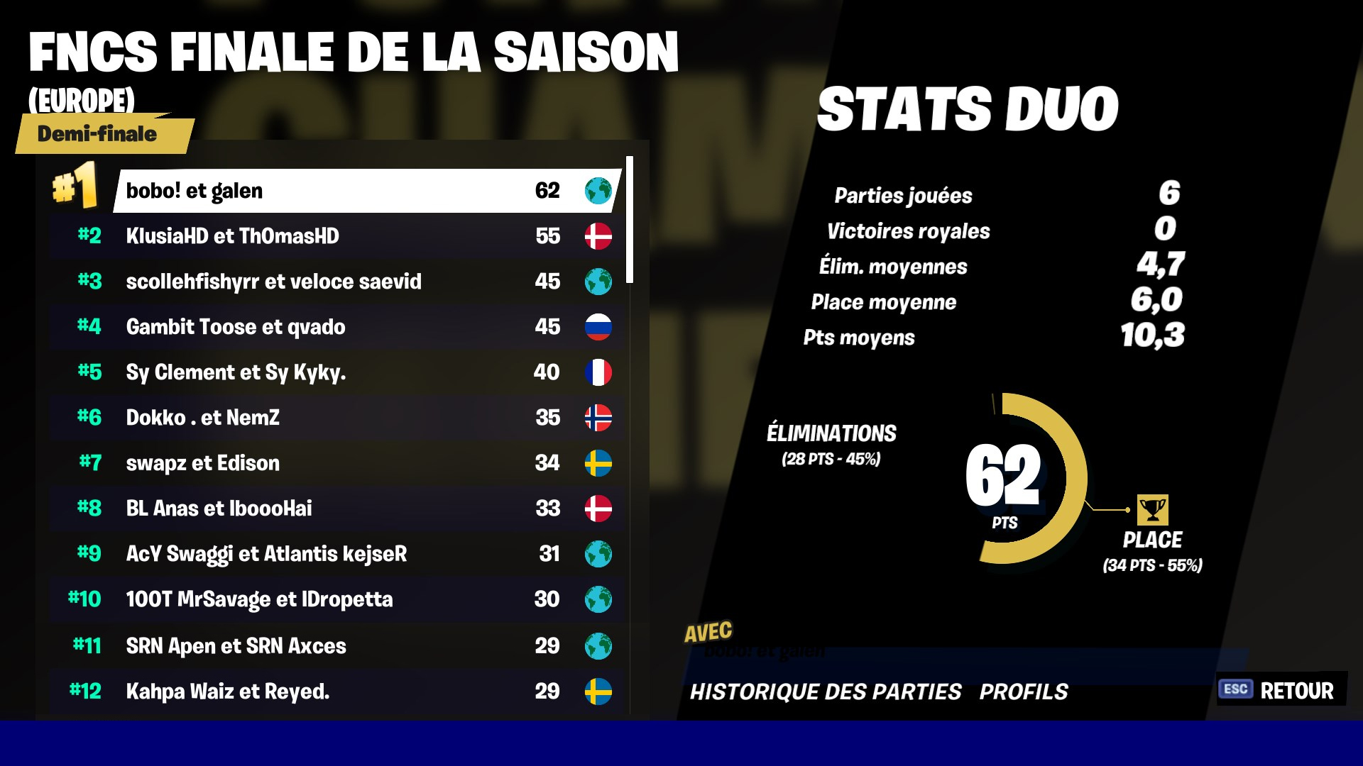 - Chaque weekend, les autres joueurs marquent des points. Les 120 meilleures duos non-qualifiées avec le plus de points à l’issue des 4 week-ends seront qualifiés pour la grande