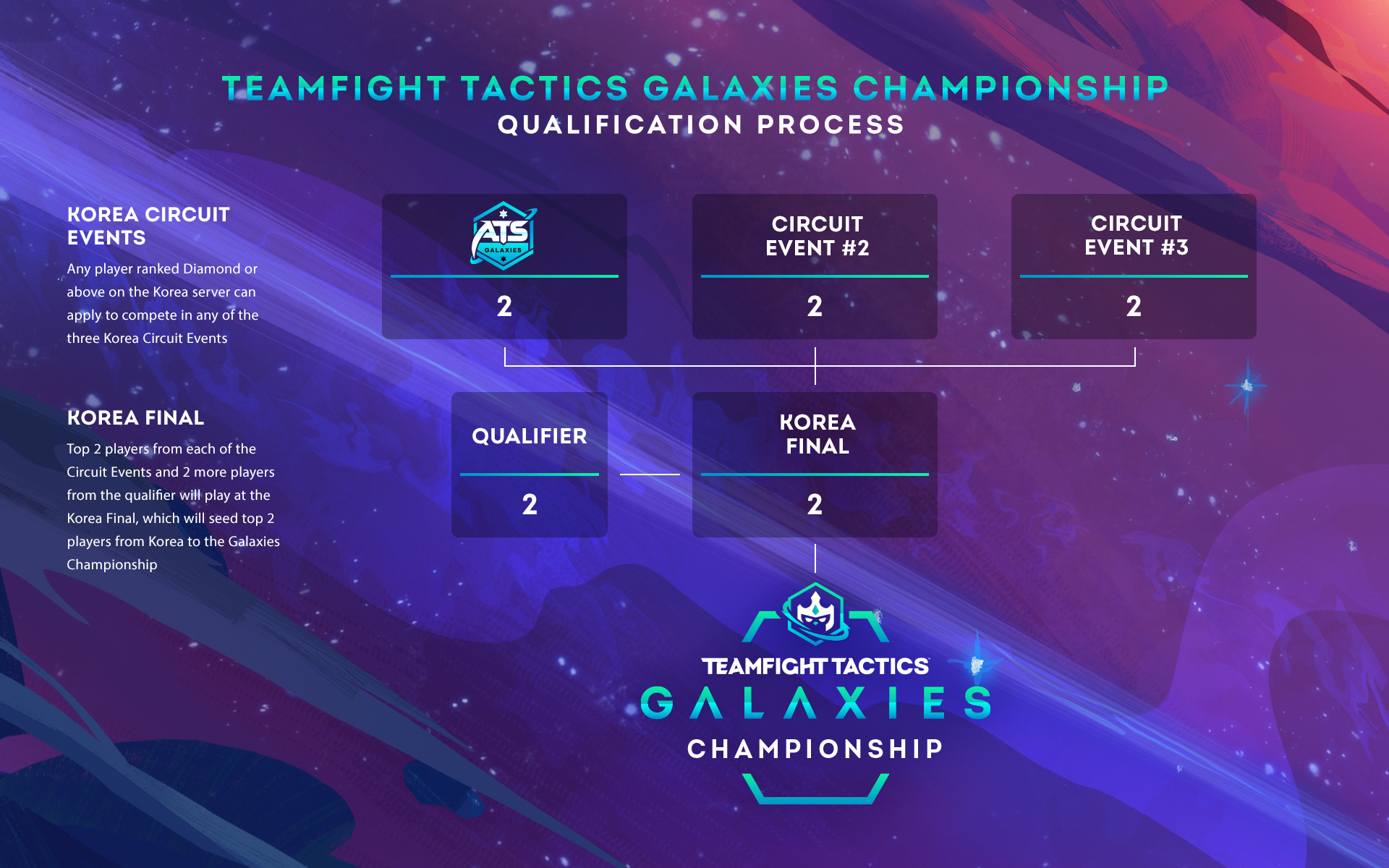 NEWS: Teamfight Tactics: Galaxies Championship will be held later this year, featuring 16 players who earn a spot from eight regional qualifiers selecting the