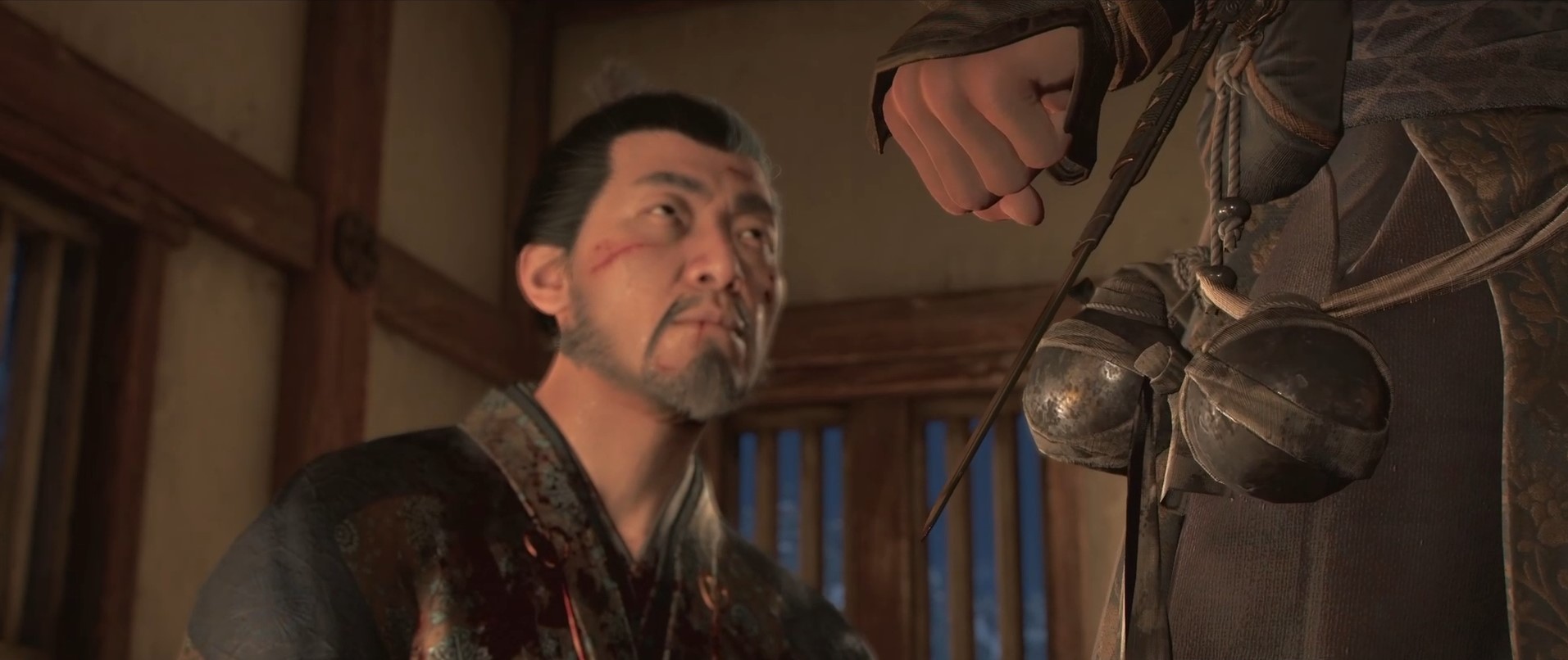 Si vous décidez d’accorder un répit à Ukita Naoie, il profitera de ce moment pour exprimer ses regrets et expliquer qu’il souhaite mourir pour garantir la sécurité de son fils. Il vous demandera donc malgré tout de l’achever.