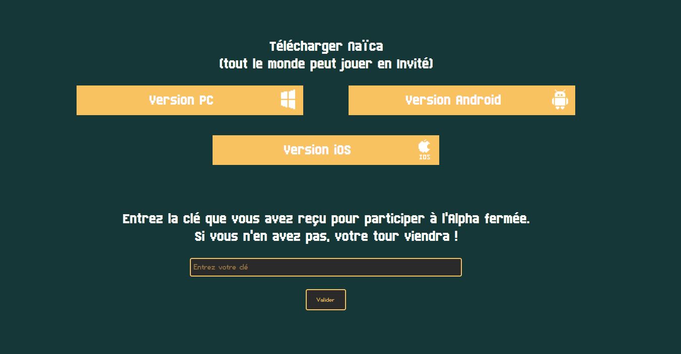 Les joueurs peuvent entrer leur clé pour l’alpha de Naïca dans l’espace dédié