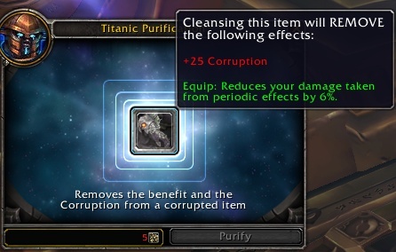 La Purification Titanesque permettra de supprimer la corruption mais aussi le bonus