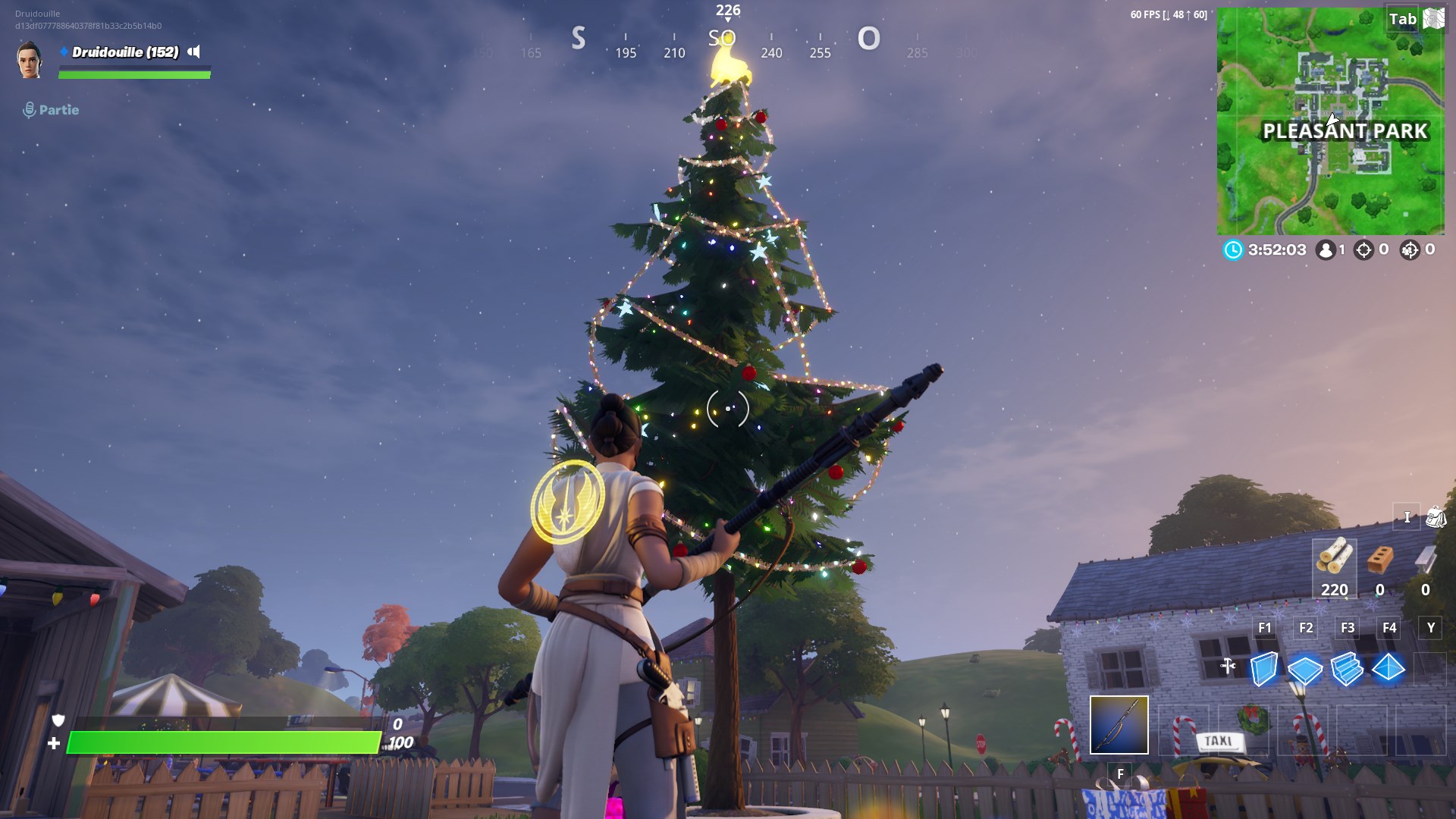 Pour réaliser ce défi, vous devez vous rendre dans différents lieux-dits de Fortnite. Le nombre n’est pas encore connu. Attention car tous les lieux-dits n’ont pas forcément de sapins de Noël,