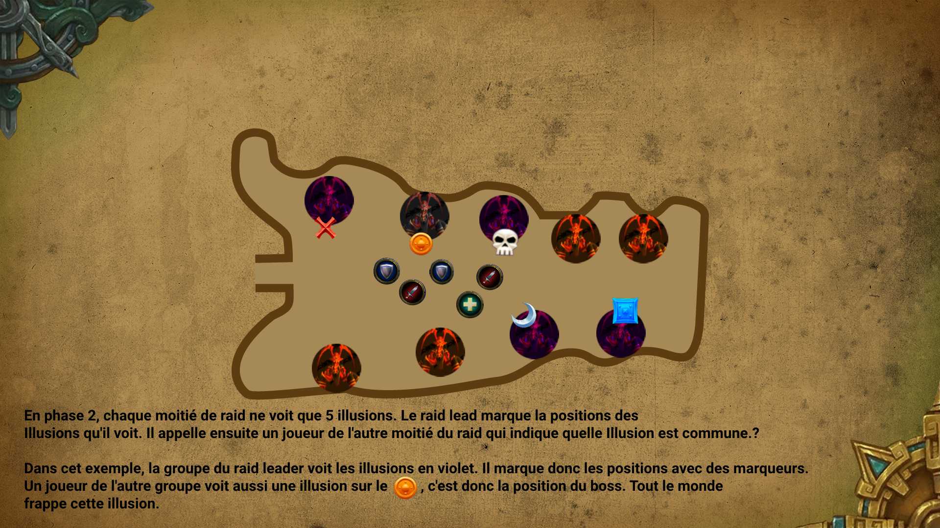 entre vous pour savoir laquelle est la bonne et la détruire vite. Dès le pop, le raid leader place des signes proche des illusions pour rapidement les identifier. Il demande ensuite à un joueur du