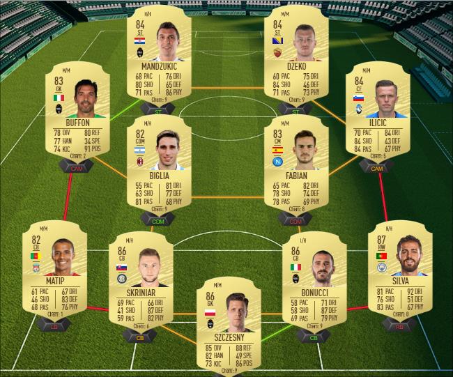 Notre exemple de solution pour le défi Équipe 87 (via le créateur Futbin)