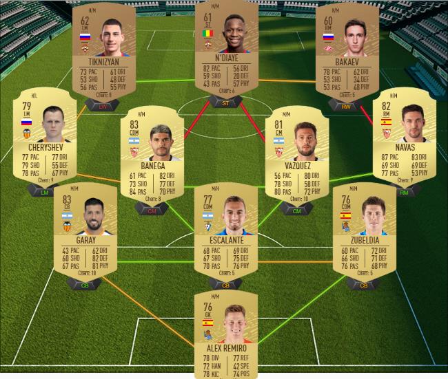 Notre exemple de solution pour le défi Valence vs Lille (via le créateur Futbin)