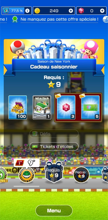 Une fois que vous avez terminé les trois Coupes, vous aurez accès à un cadeau saisonnier. Il en existe de nombreux, vous devez récolter un maximum d’étoiles afin de débloquer tous ces cadeaux.