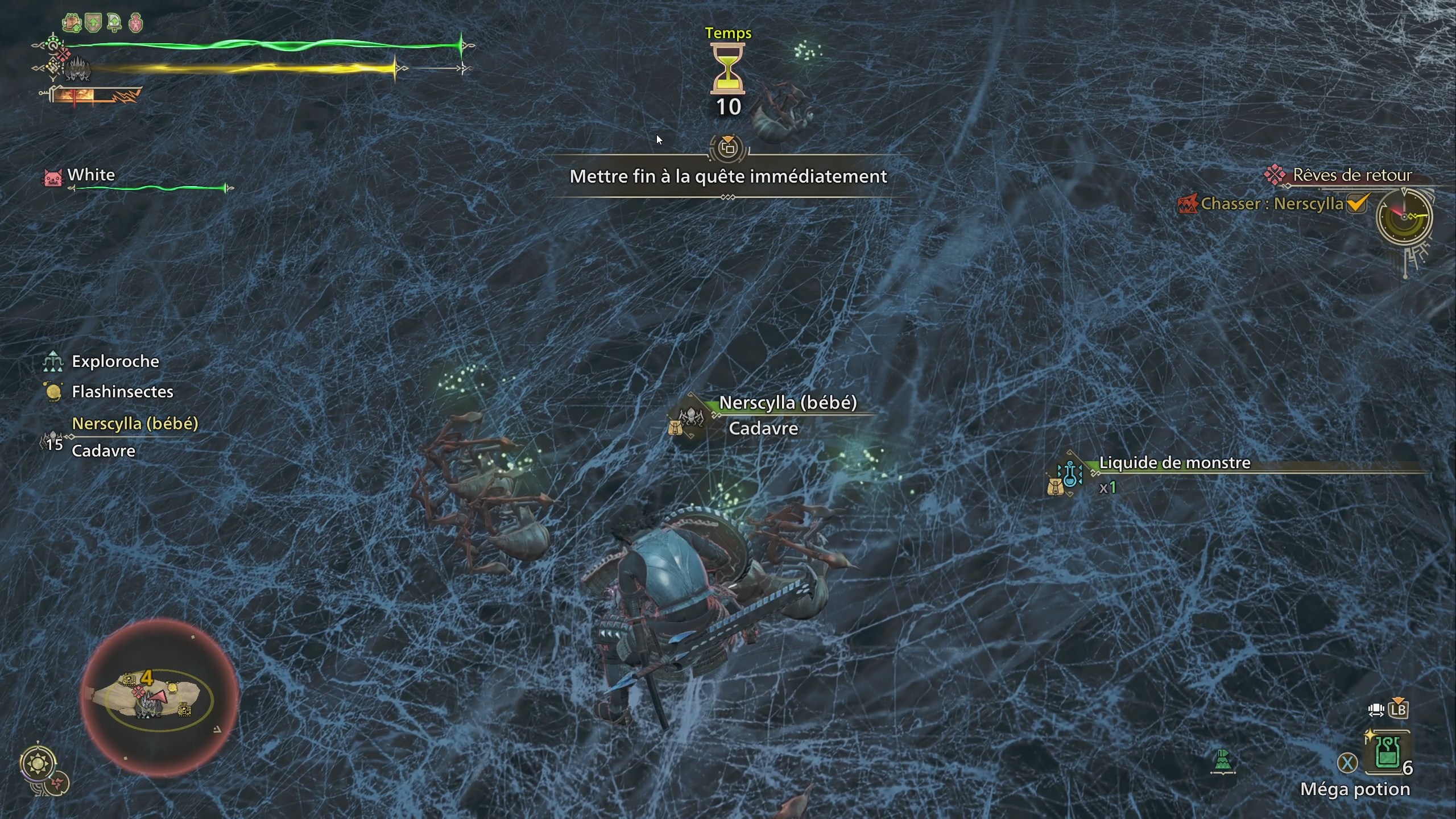 conseillons de vous rendre dans la zone 2 au niveau de l’énorme toile d’araignée où vous avez combattu Nerscylla. Nous vous rappelons également que le liquide de monstre vous est