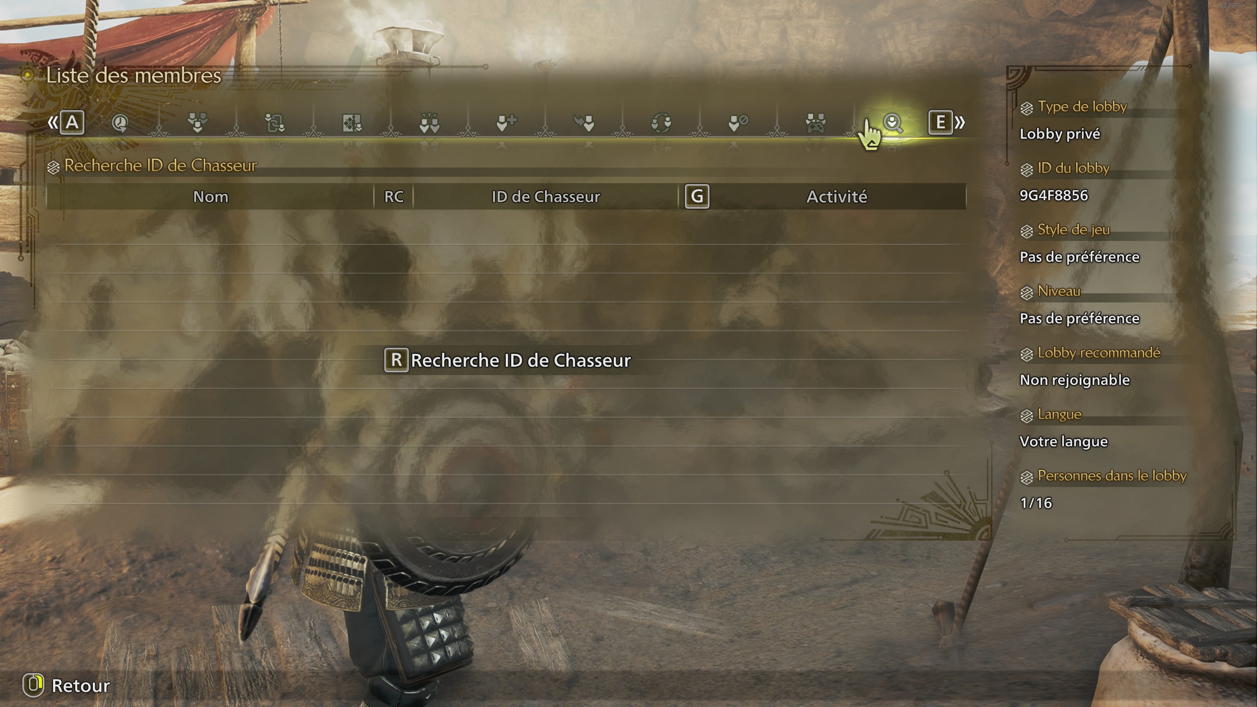 - Par ID du lobby, qui consiste à entrer l’ID visible par votre ami en cliquant sur Liste des membres dans la section communication