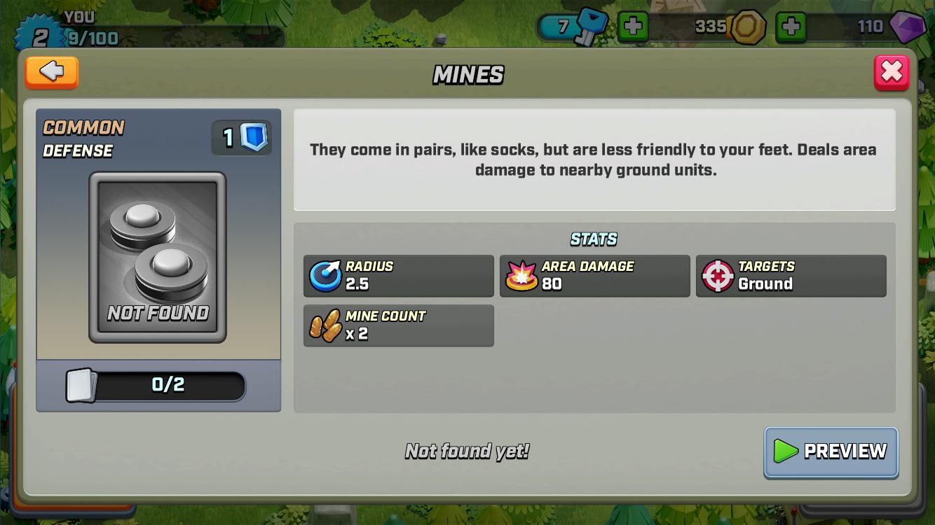 Présentation : Mines est une unité commune de défense, disponible lorsque vous lancez le jeu.