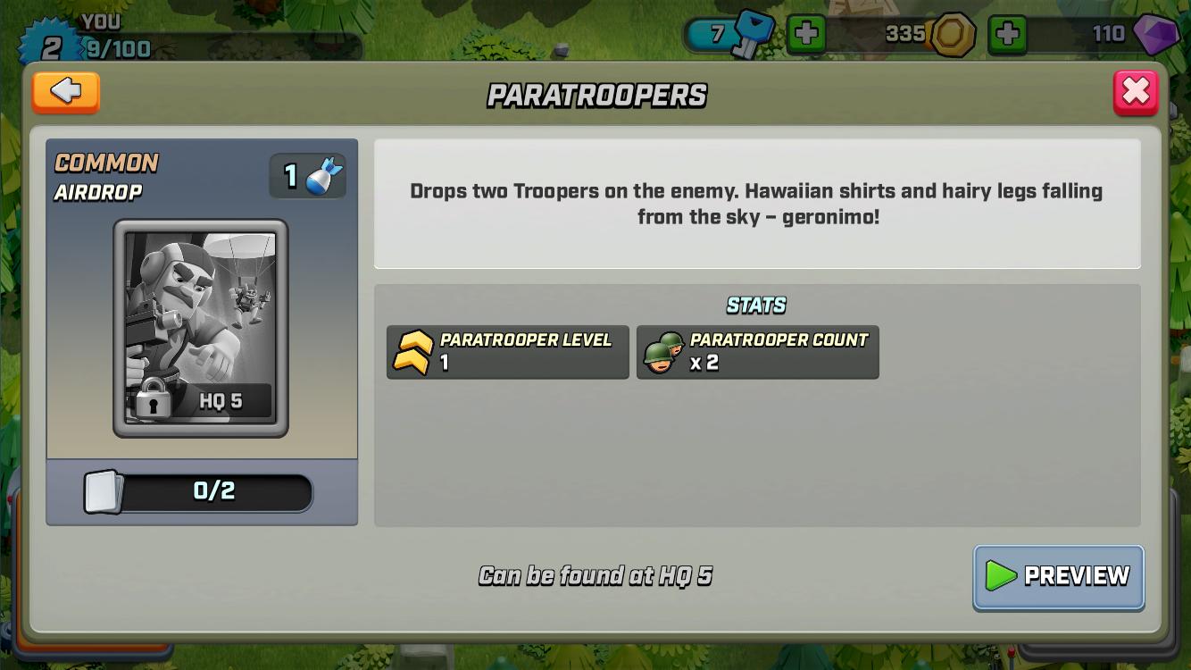 Description du Paratroopers au niveau 1 depuis Rush Wars