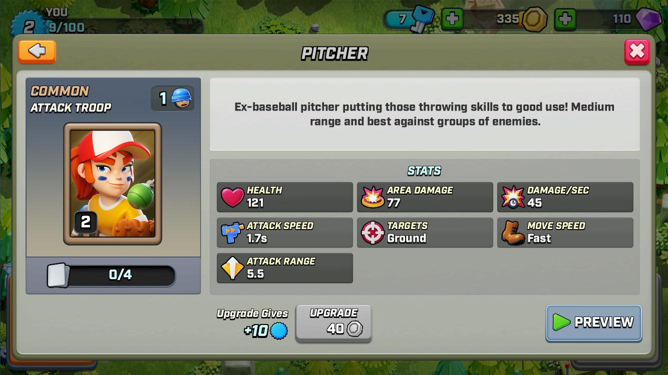 Description du Pitcher au niveau 2 depuis Rush Wars