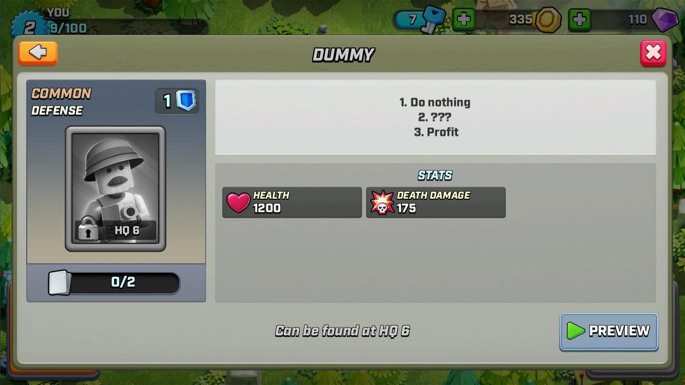 Description du Dummy au niveau 1 depuis Rush Wars