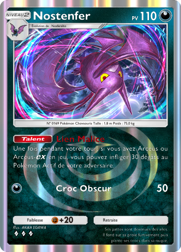 C’est la grande nouveauté de cette extension, Arceus possède des synergies avec plusieurs cartes dont Nostenfer. Grâce au talent Lien Puissance,
