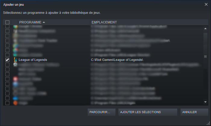 Ajouter League of Legends à votre bibliothèque Steam en suivant les instructions au-dessus.