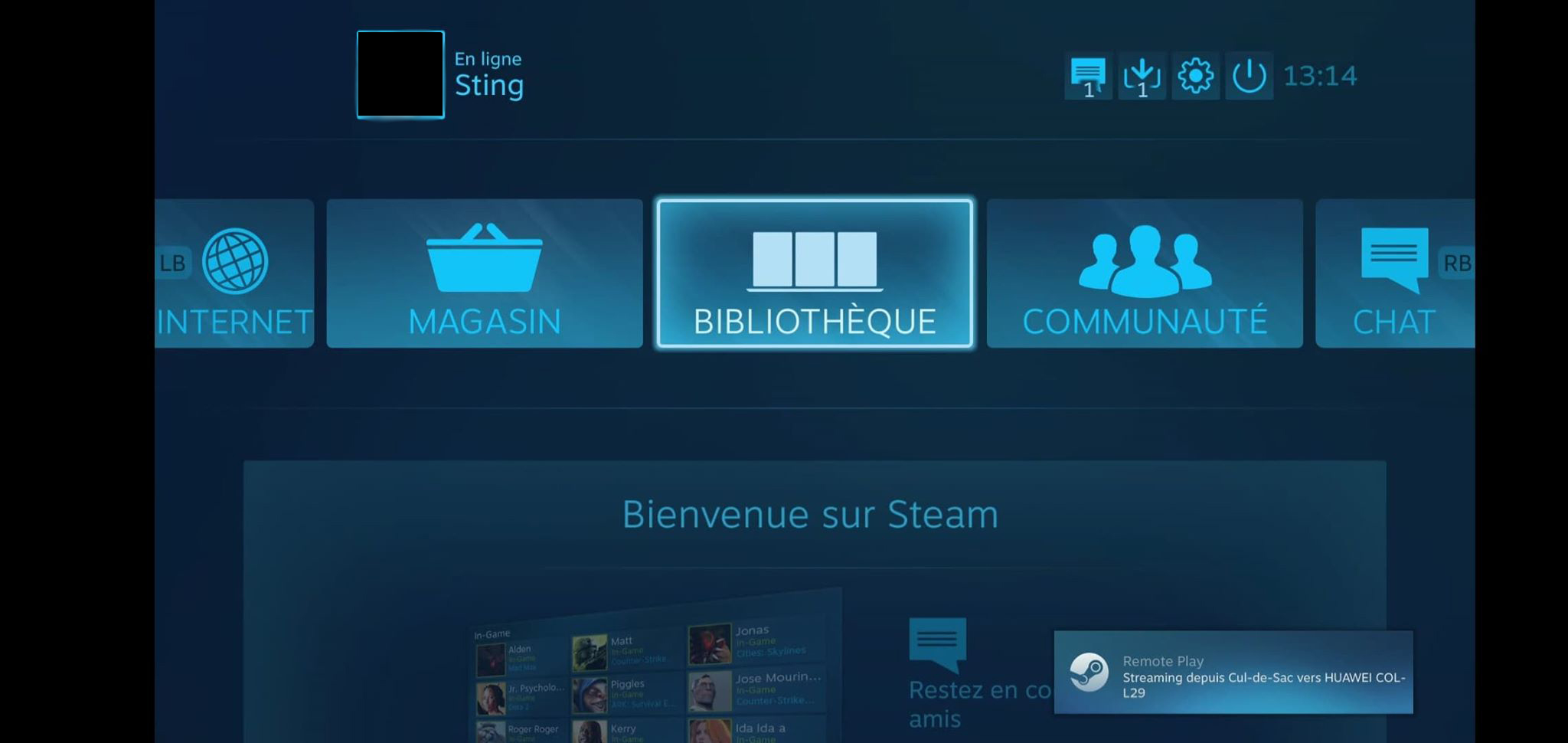 grâce à l’application Steam Link, qui permet de contrôler son ordinateur à distance. Nous