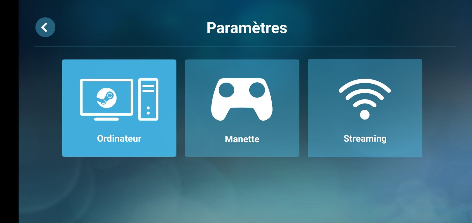 → Pour lancer le jeu, commencez par lancer l’application Steam Link. Ouvrez les paramètres, puis rendez-vous dans l’onglet Ordinateur.