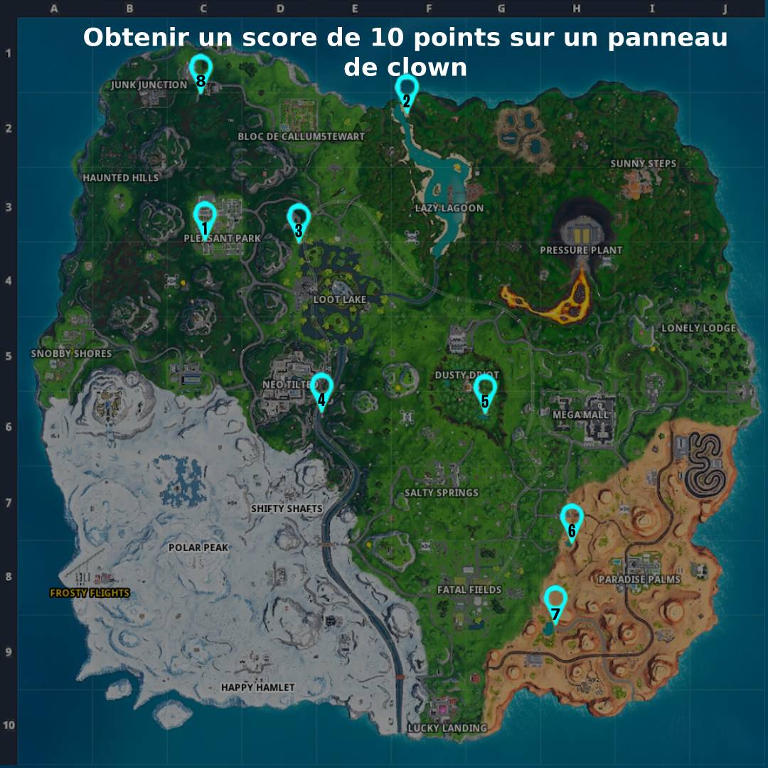 Le défi du jour vous demandera d’obtenir un score d’au moins 10 points sur un panneau de clown. Pour y parvenir, il vous faudra vous diriger vers l’un des 8 panneaux de clown présents sur la
