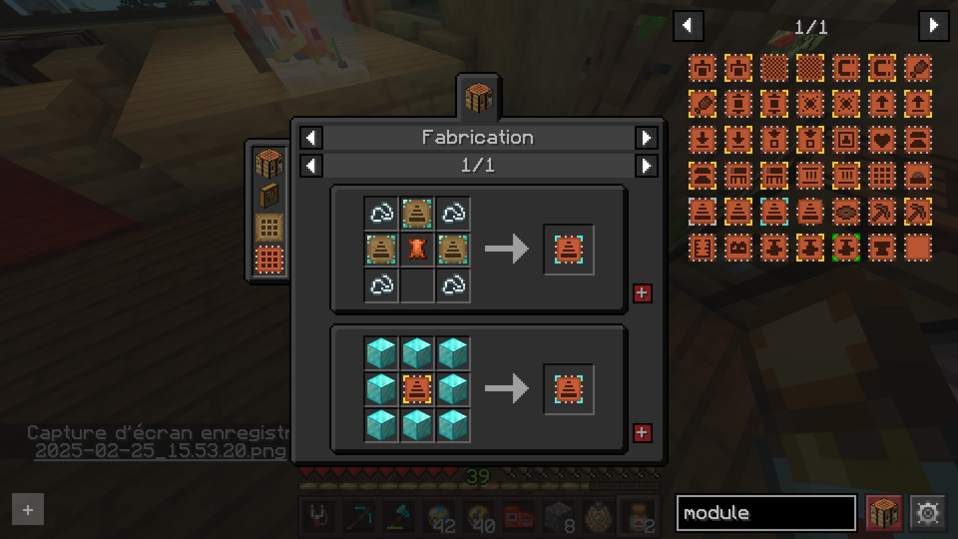 Les recettes varient en fonction des ressources disponibles et des ajouts spécifiques du modpack.