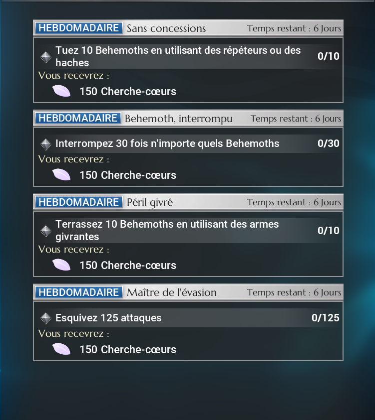 Dauntless propose de nouveaux défis chaque vendredi, vous faisant gagner des cherche-coeurs pour avancer dans les paliers. Tandis que certains défis sont relativement simples,