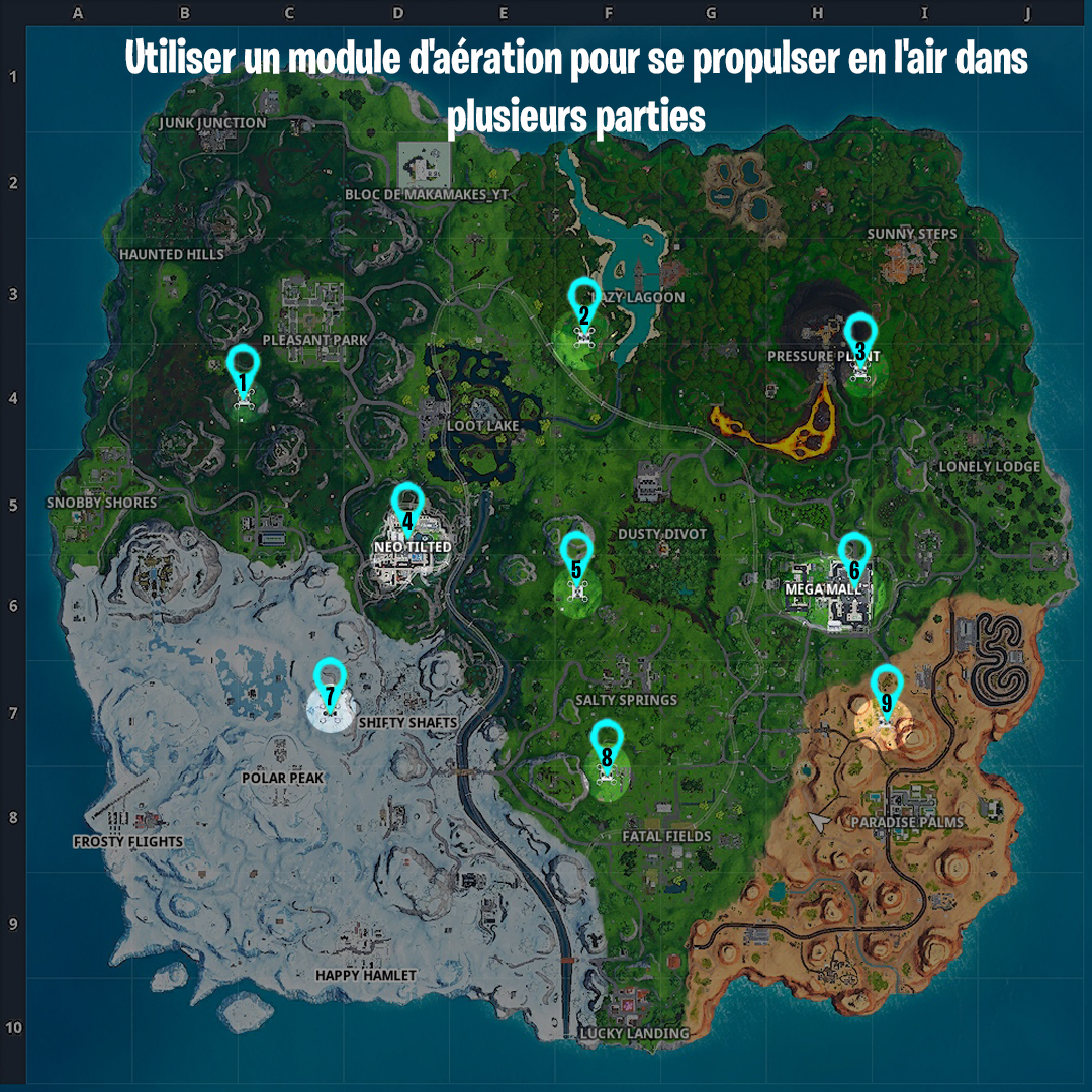 Fortnite : Utiliser un module d’aération pour se propulser en l’air dans plusieurs parties, défi semaine 2 saison 9