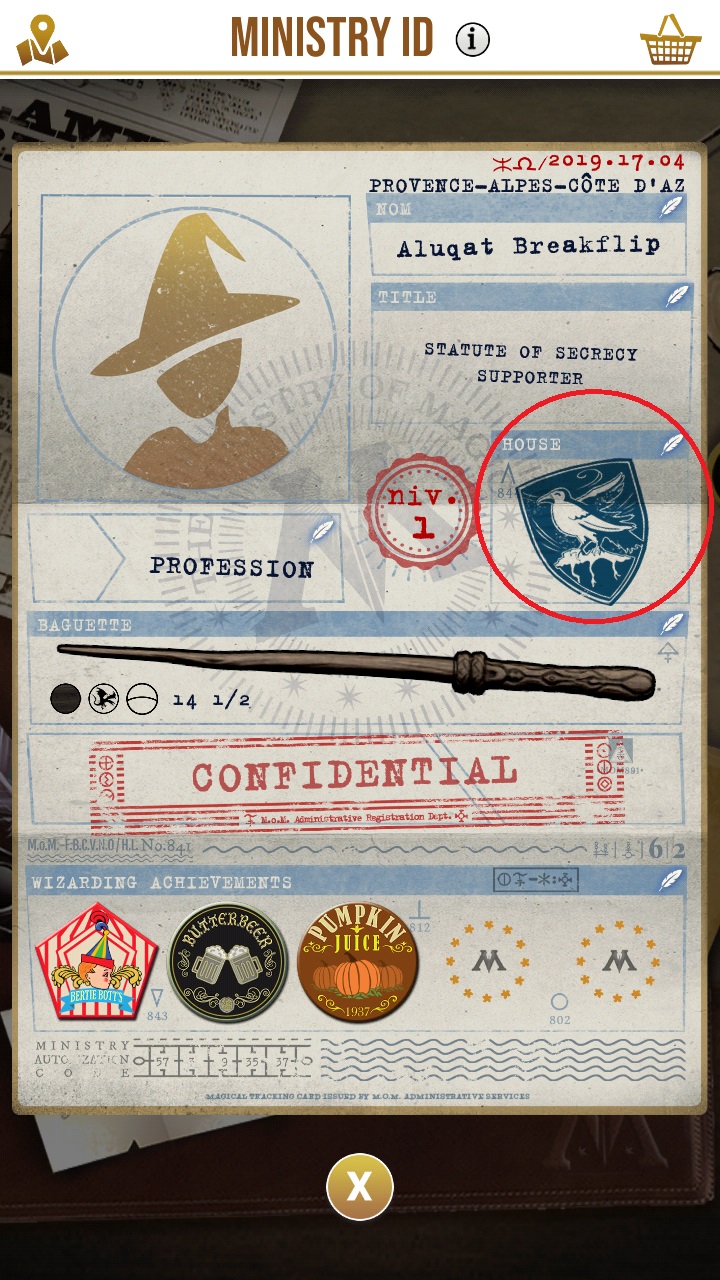 Choisir votre maison n’a rien de bien difficile. Il vous suffit, lorsque vous êtes sur l’écran principal, d’appuyer sur le bouton en bas à gauche qui vous renverra votre Ministry ID (capture