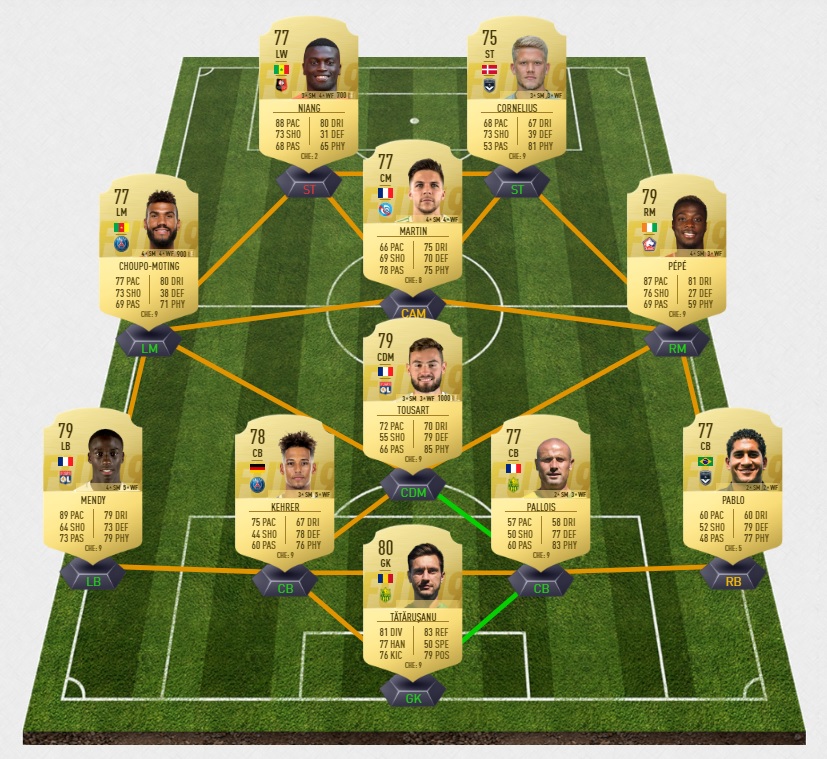 Notre exemple de solution pour le défi Renfort Ligue 1 81+ (via le créateur Futhead)