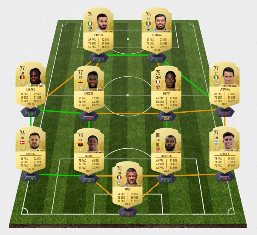 Notre exemple de solution pour le défi Renfort Serie A 81+ (via le créateur Futhead)