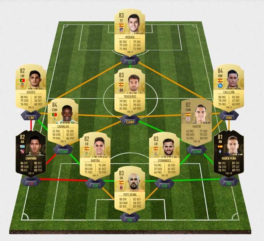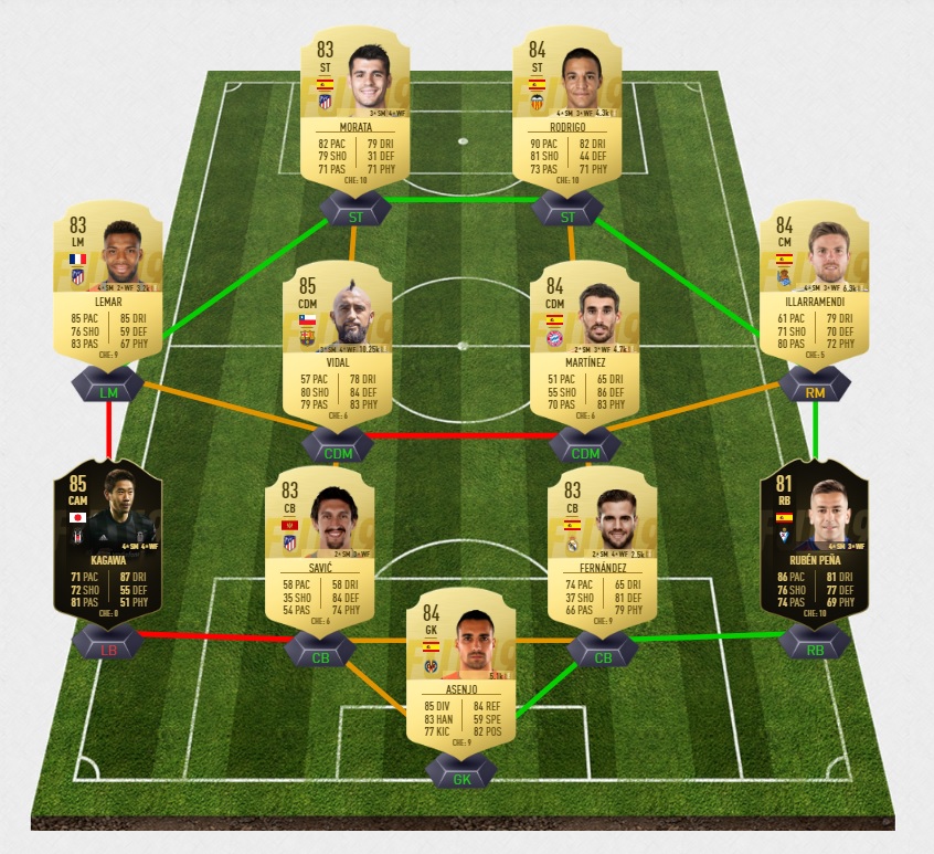 Notre exemple de solution pour le défi Equipe notée 84 (via le créateur Futhead)