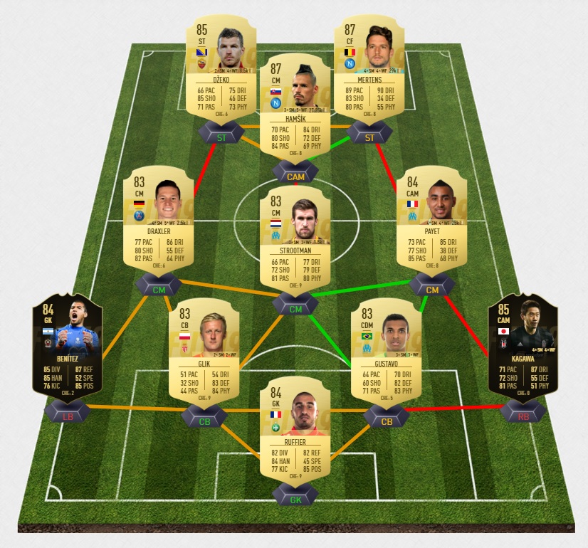 Notre exemple de solution pour le défi Equipe notée 85 (via le créateur Futhead)