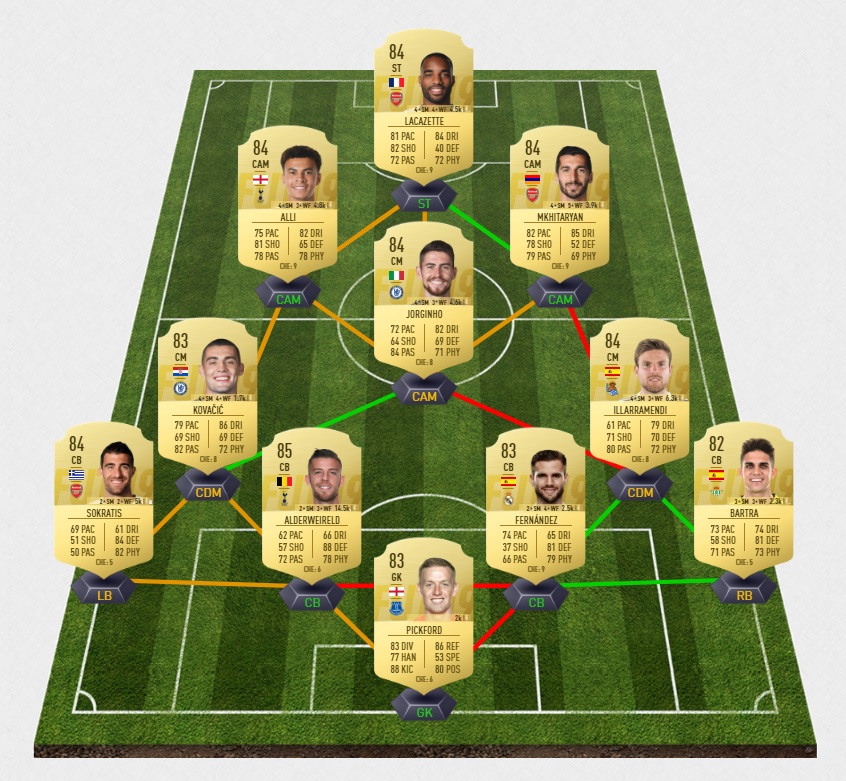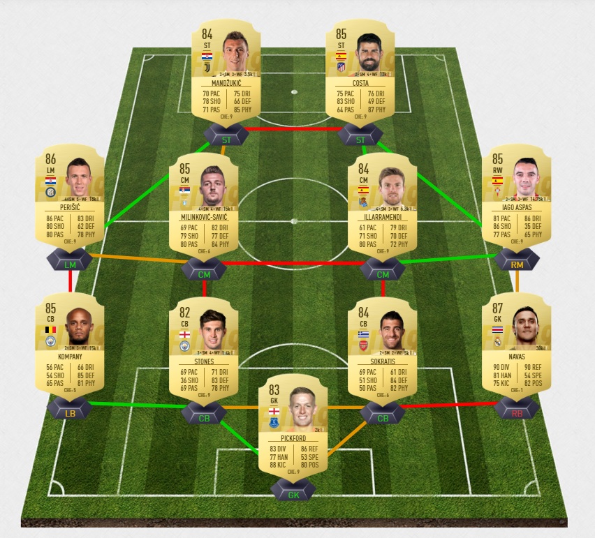 Notre exemple de solution pour le défi Les Trois Lions (via le créateur Futhead)