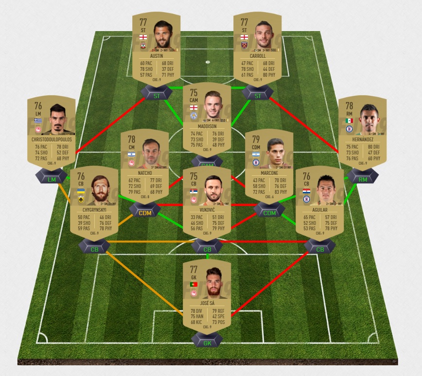 A noter que cette formation est un exemple de solution et qu’il est tout à fait possible de réussir le défi avec une toute autre équipe. A noter également que le coût des cartes est à prendre en