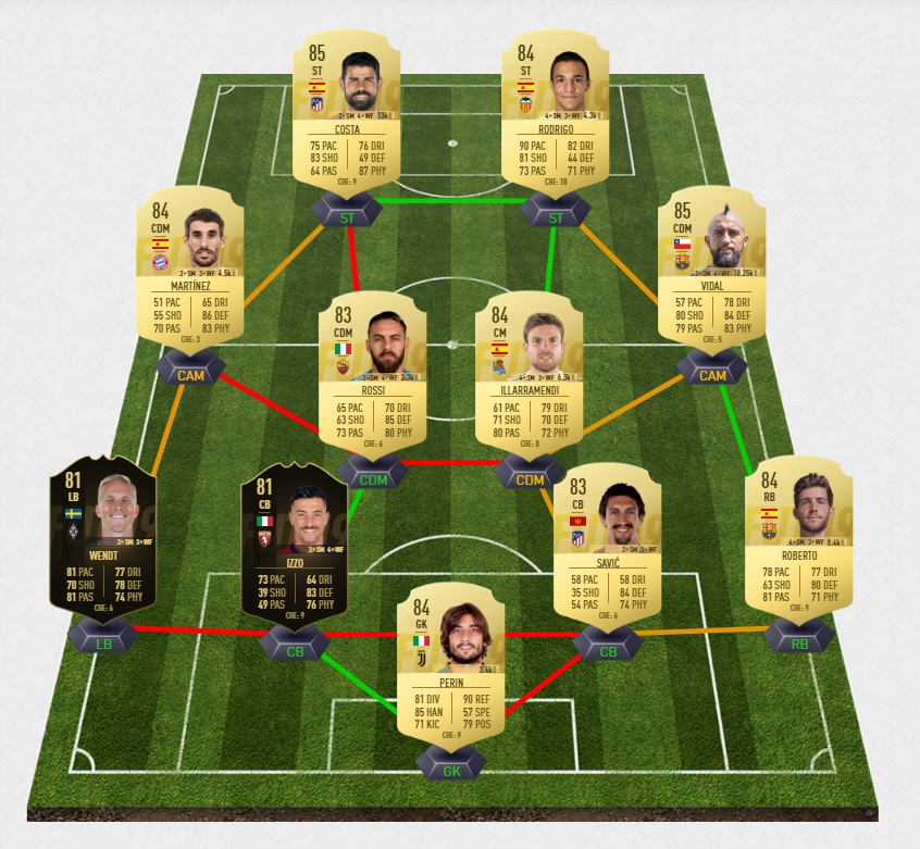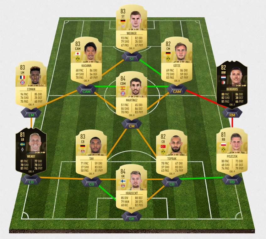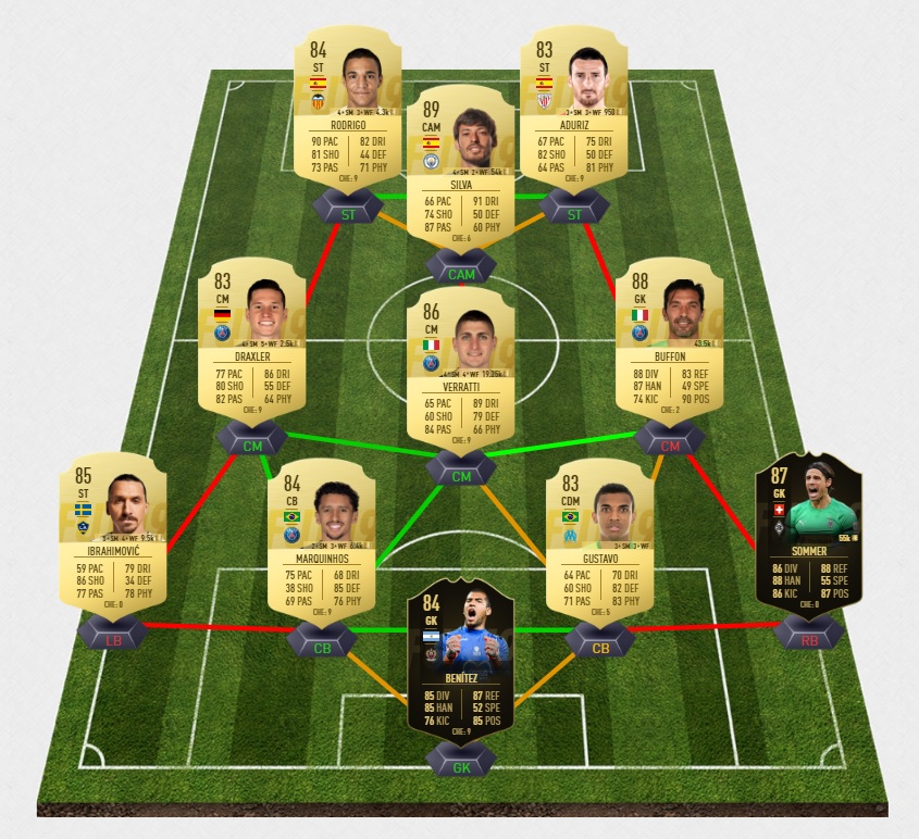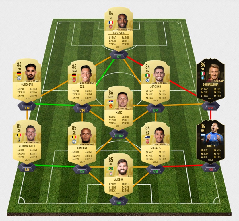 Notre exemple de solution pour le défi Equipe notée 84 (via le créateur Futhead)