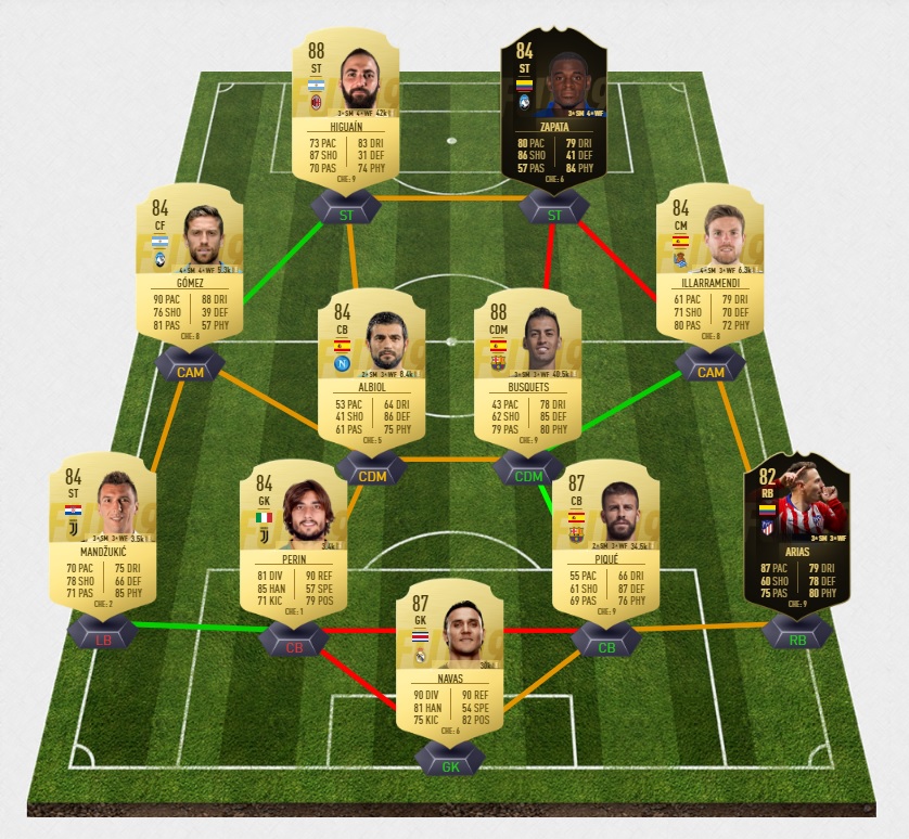 Notre exemple de solution pour le défi Equipe notée 84 (via le créateur Futhead)