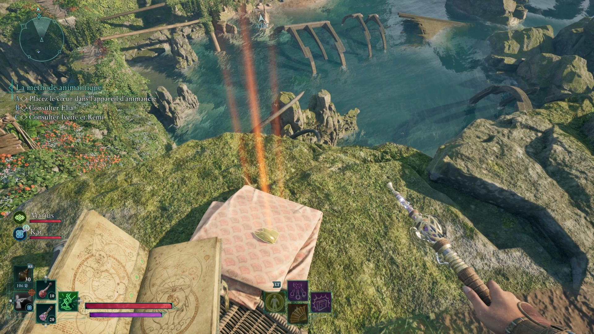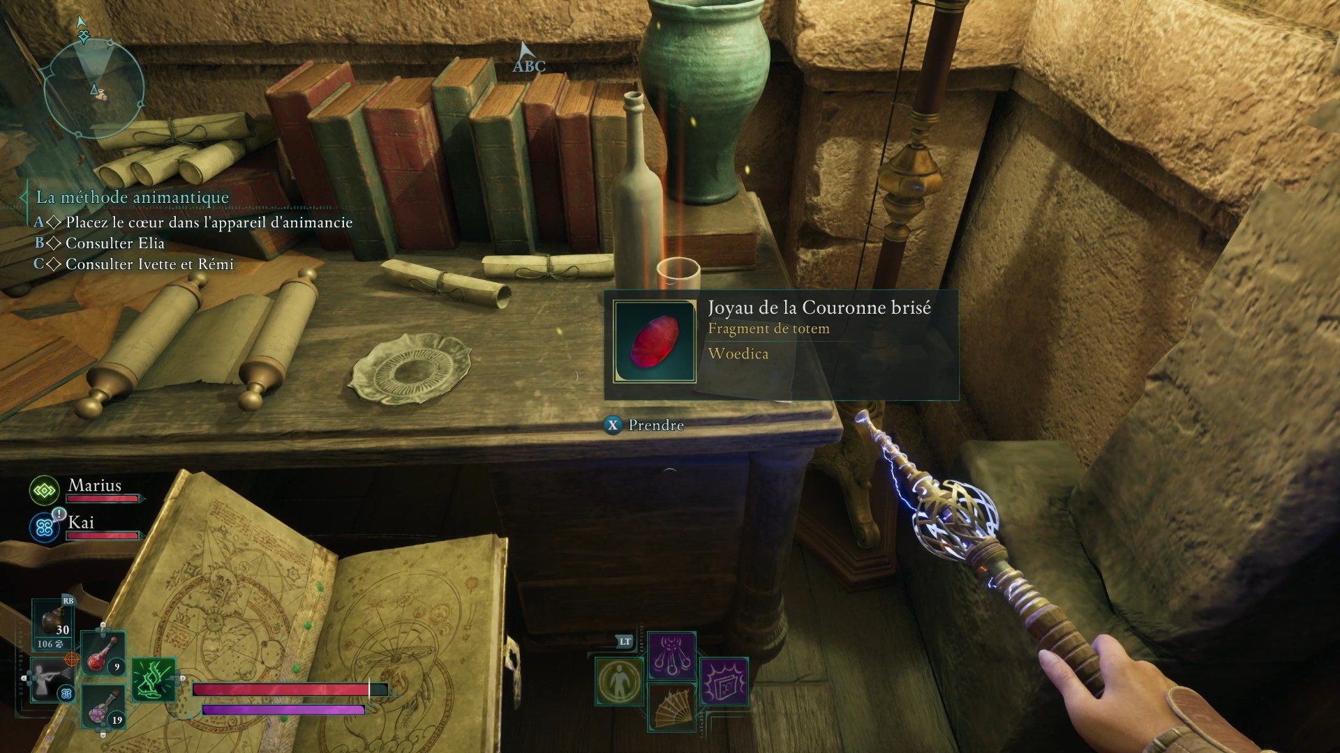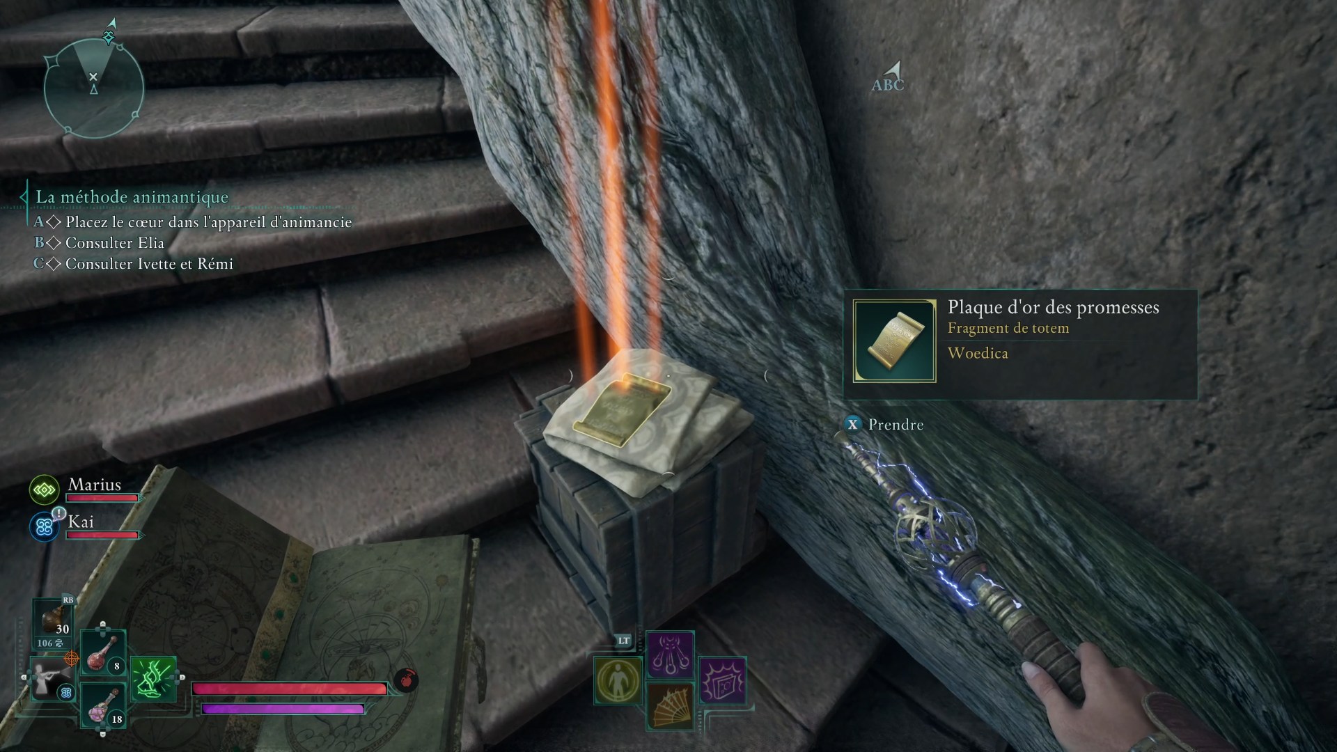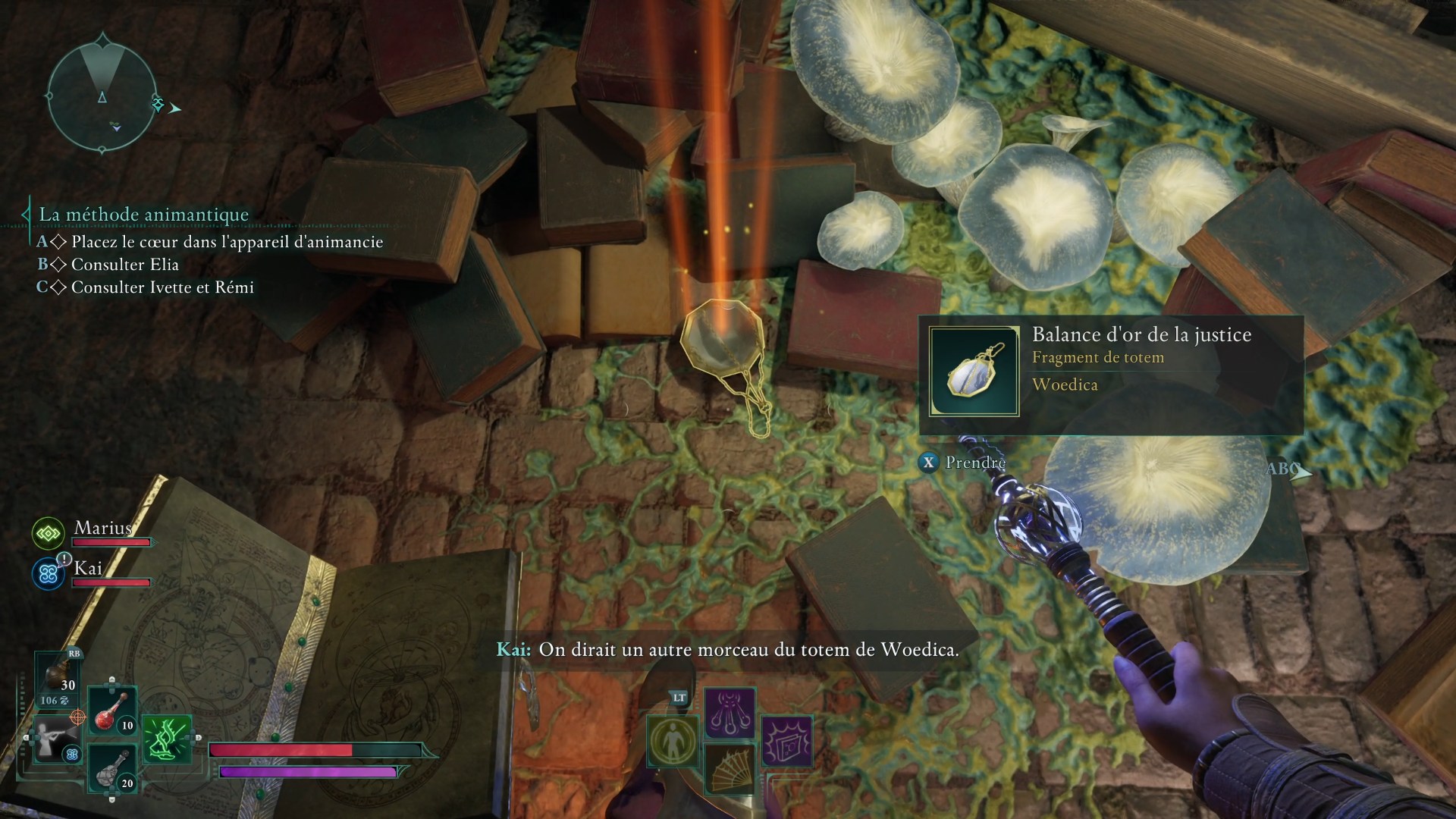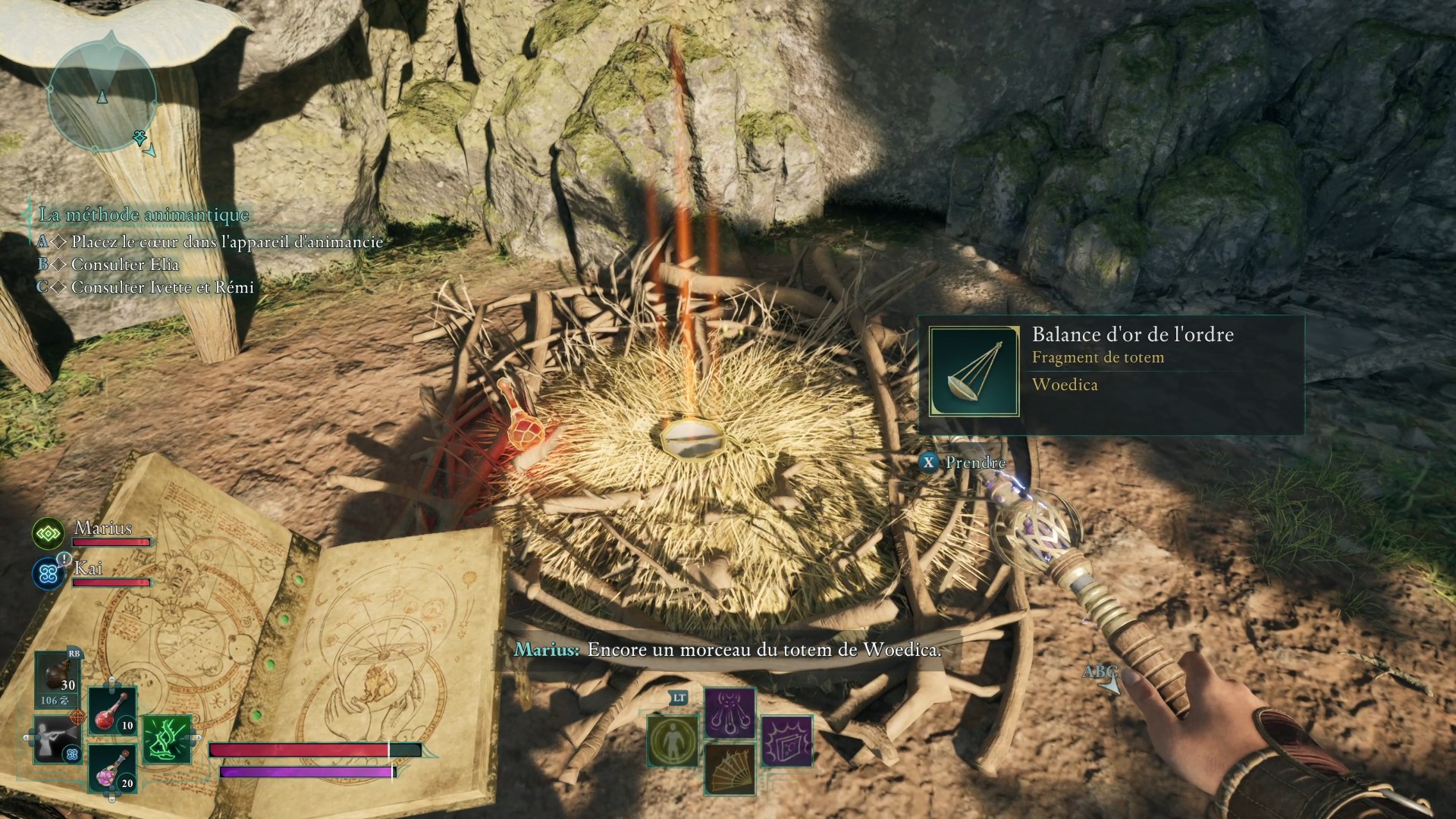 L’ensemble des fragments et la base récupérés, retournez au campement pour voir un piédestal sur lequel vous allez pouvoir réassembler le Totem de l’autorité légitime. En