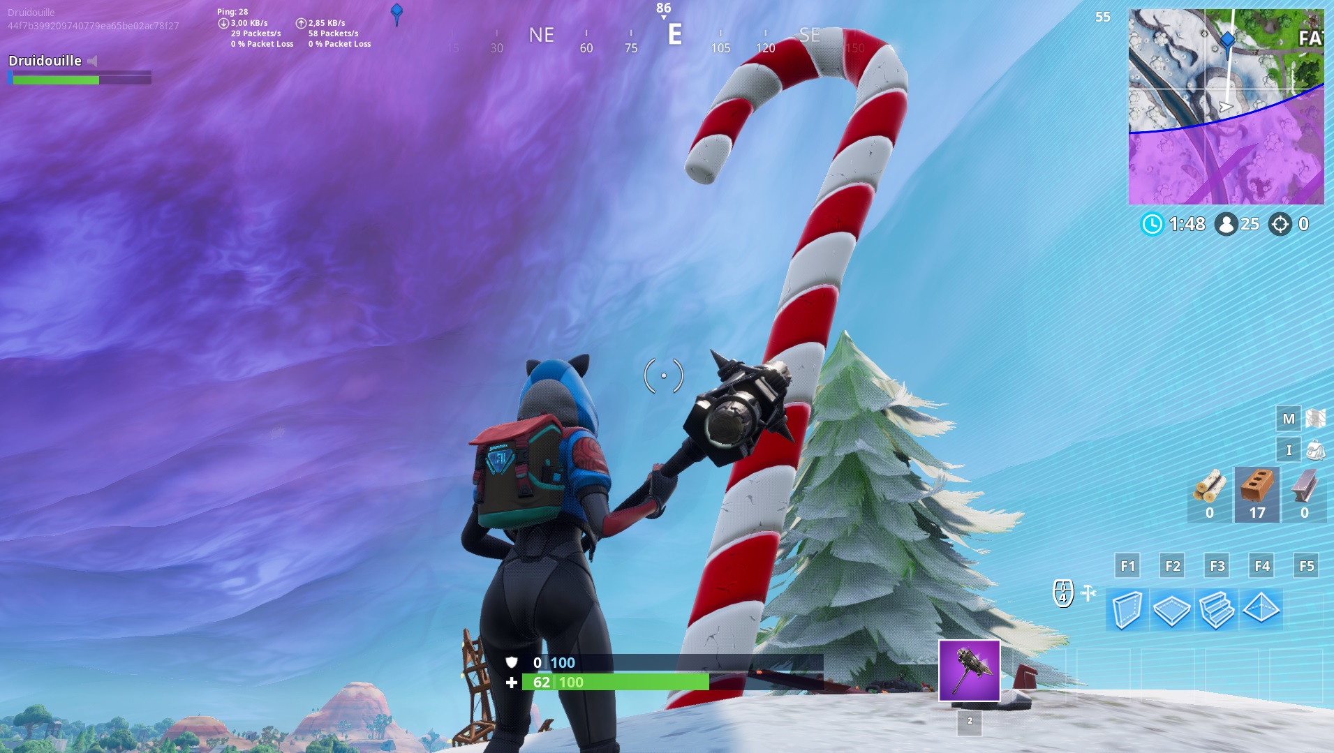 Fortnite sont disponibles depuis le mercredi 19 décembre. Aujourd’hui, il faudra visiter les sucres d’orge géants. Ceux-ci se trouvent près de Fatal Fields, au nord de Wailing Woods, au nord de