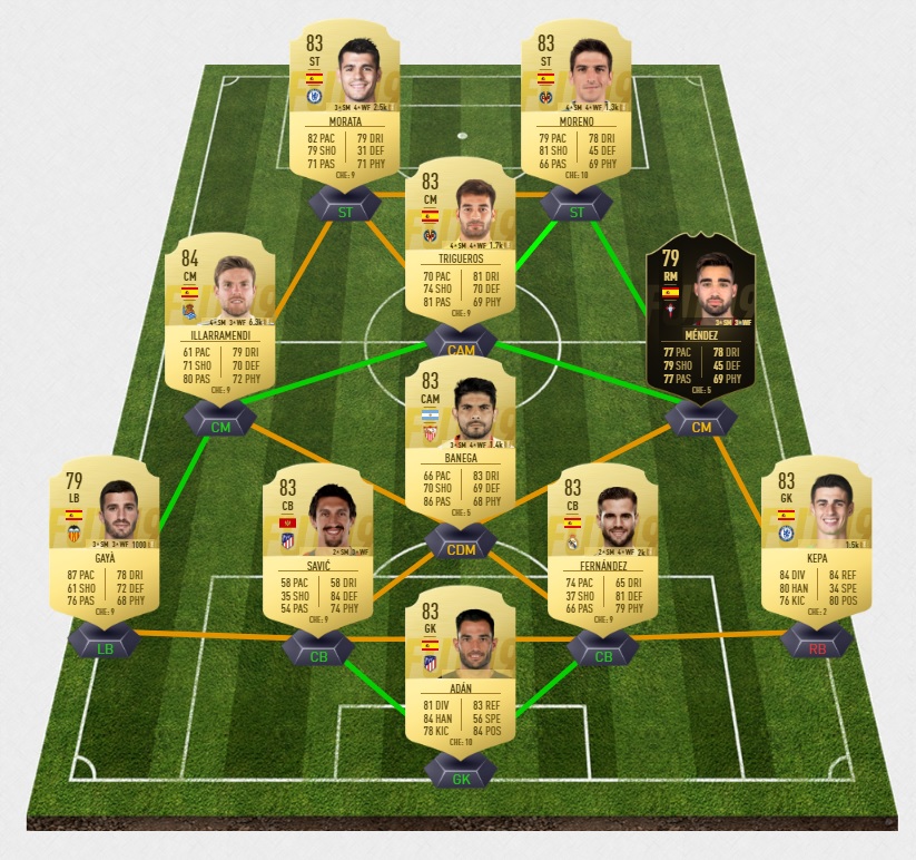 Notre exemple de solution pour le défi Equipe notée 84 (via le créateur Futhead)