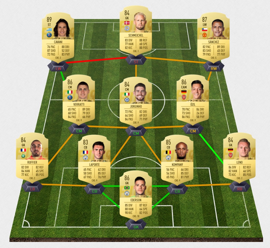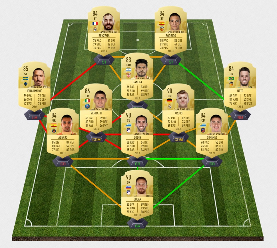 Notre exemple de solution pour le défi Equipe notée 85 (via le créateur Futhead)