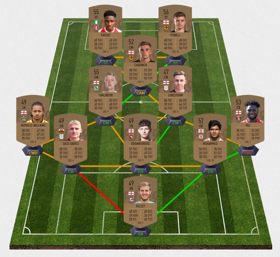 Notre exemple de solution pour le DCE grosse affiche Chelsea vs Everton (via le créateur Futhead)