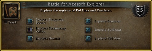 Pour la première fois, Blizzard encourage, voire force, les joueurs à créer au moins deux personnages différents, chacun dans une faction. Seul le succès « Battle for Azeroth Explorer