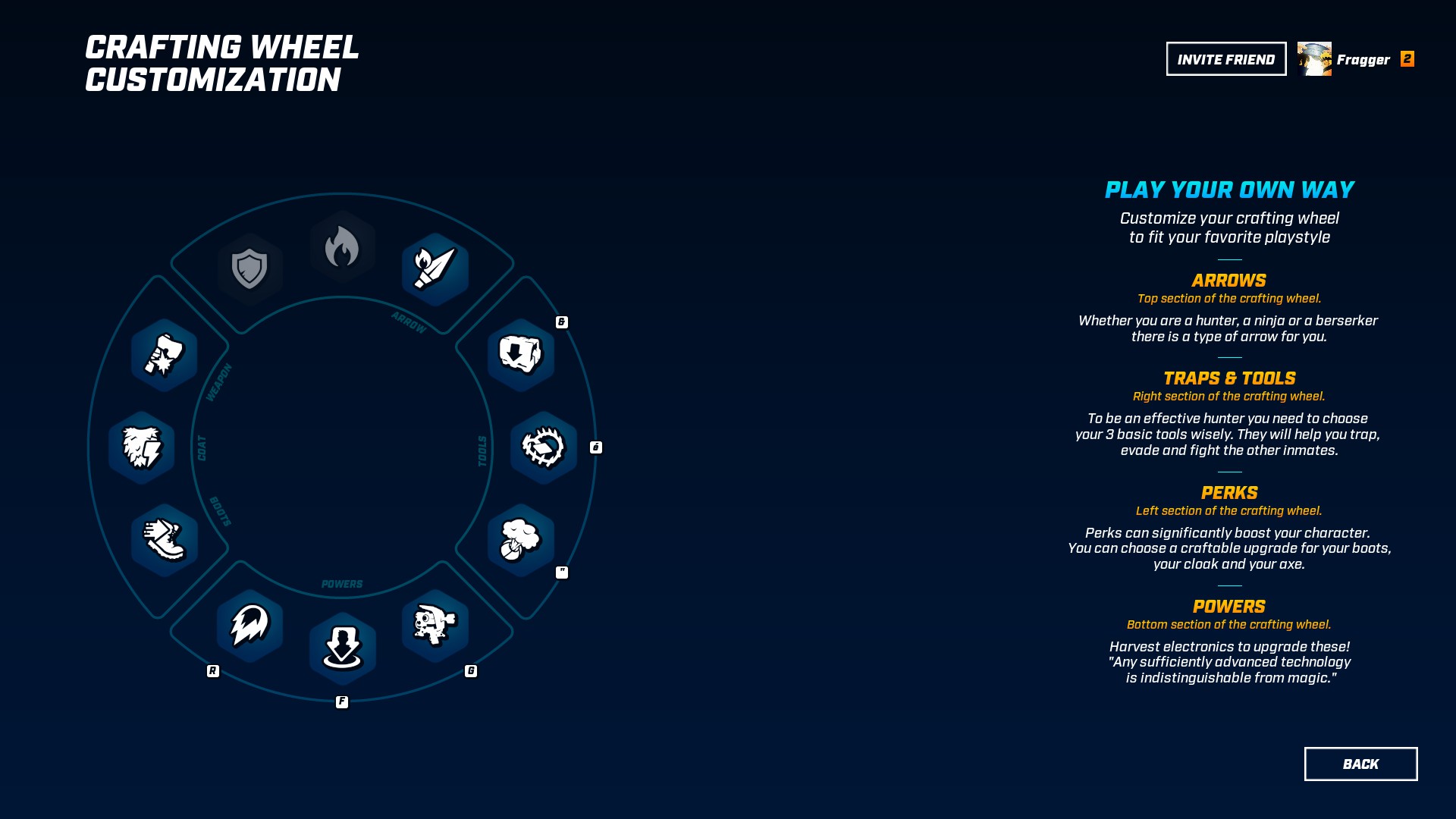 En ce qui concerne la modification de votre roue de craft, elle s’effectue dans le menu principal du jeu, dans l’onglet « Crafting Wheel ».