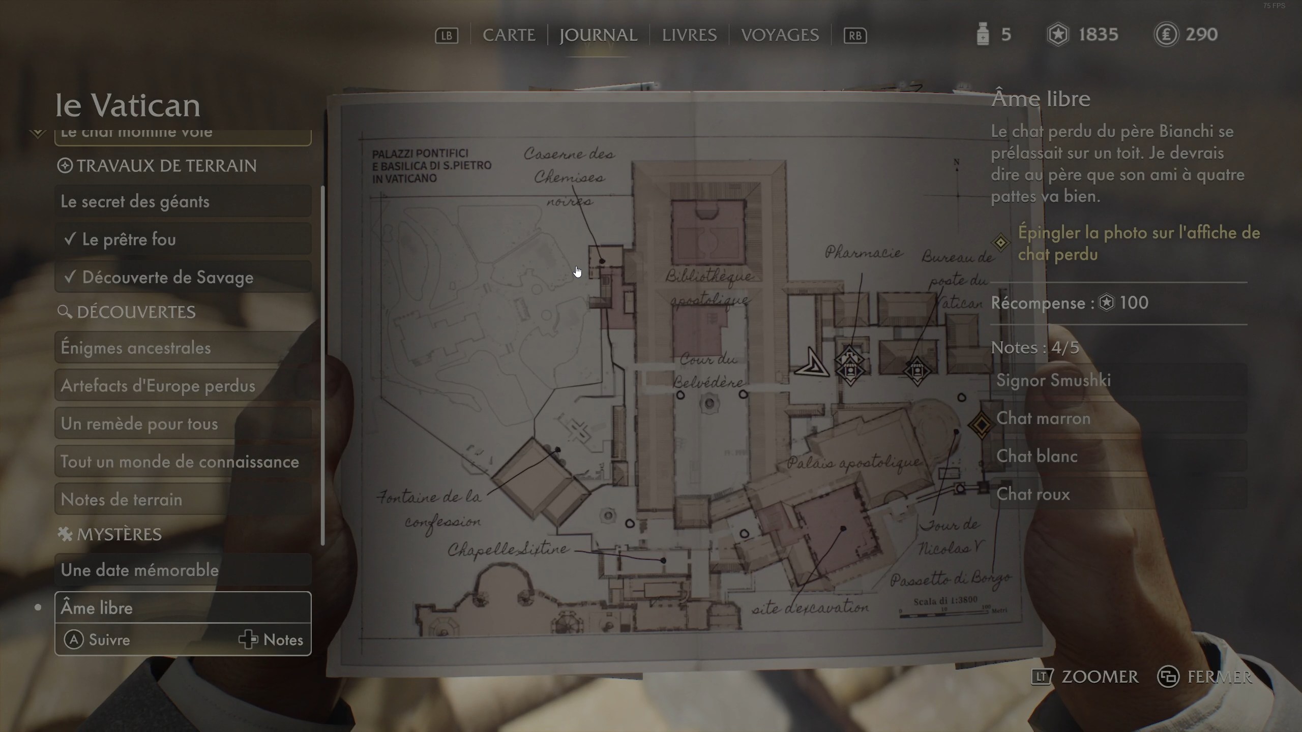 Après avoir consulté la note mystérieuse sur le tableau d’affichage, vous allez devoir partir à la recherche de Signor Smushki, un chat noir pour le compte de Père Bianchi comme vous pouvez le