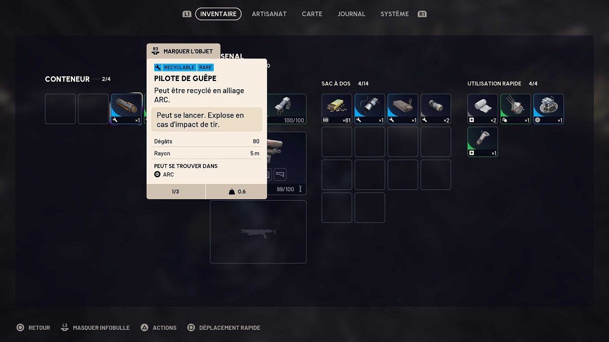 vous pouvez vous en servir comme s’il s’agissait d’une grenade : pour cela, équipez-le dans la section « utilisation rapide » de votre inventaire, puis attaquez un autre ARC pour