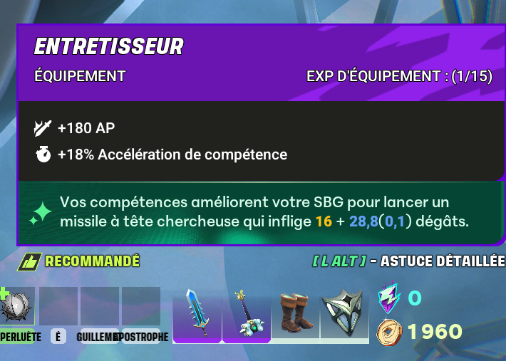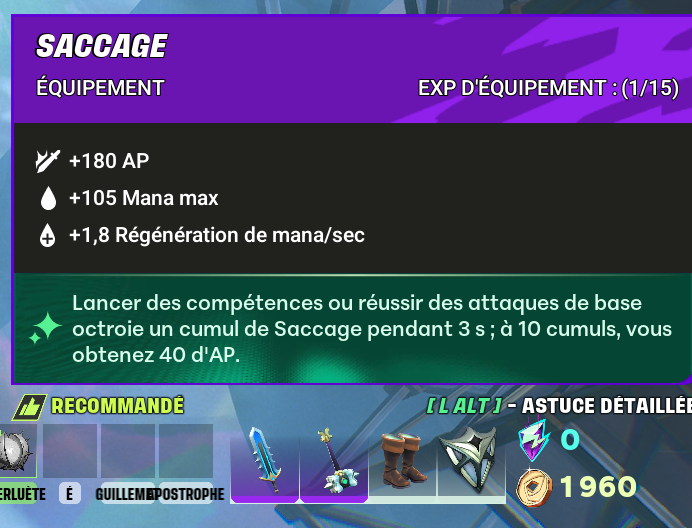 Au niveau de l’équipement, vous voudrez prendre l’Entretisseur qui s’améliore depuis la Lame Technique et « Saccage » qui s’améliore en prenant la Lame Mana.