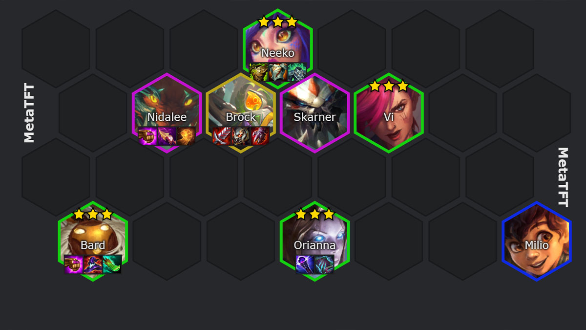 - Si ton board tient bien : reste niveau 6 et au-dessus de 50 gold jusqu’à ce que tu trouves Bard, Vi, Neeko et Orianna 3 étoiles